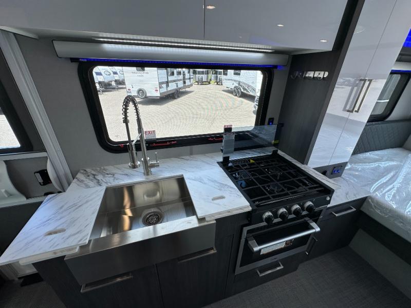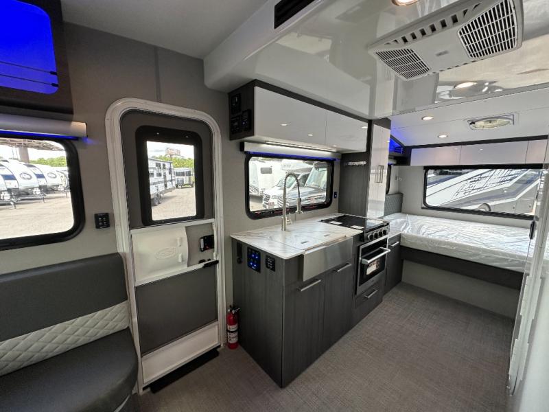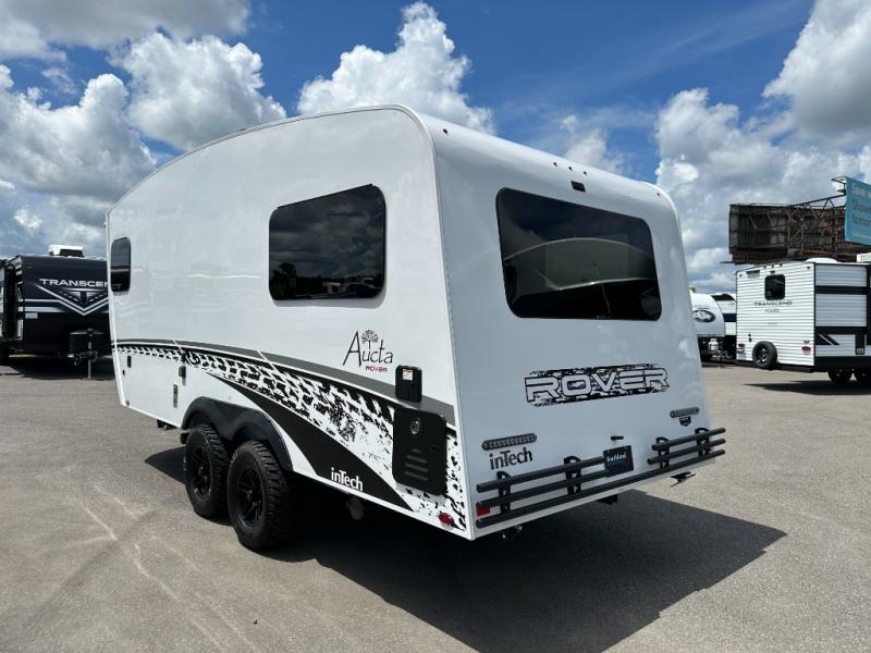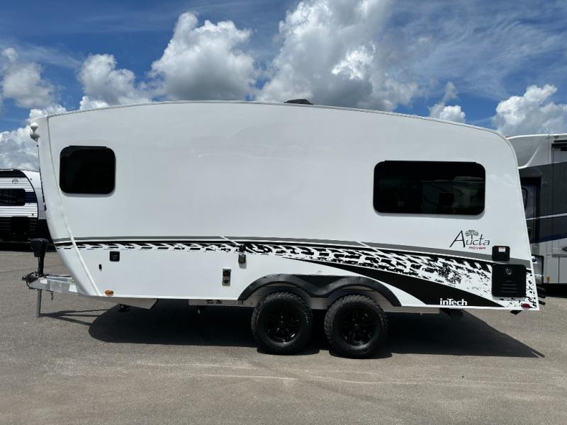 With any Aucta travel trailer by inTech RV you will enjoy creative interior spaces, luxury features, and smart storage spaces for a one-of-a-kind trailer. The one-piece fiberglass roof, all-aluminum cage frame, and Dexter torsion axle provide durable construction and smooth towing, and the fold-away double entry steps and power tongue jack will make set-up easier than ever. Inside, you'll find Infinity woven flooring, a large farmhouse sink, USB ports and 120V outlets, plenty of storage compartments, and MaxxAir vent fans to keep everything fresh. These models also include bubble foil insulation in the walls and ceiling, along with a 25K BTU furnace and a 15K BTU A/C so you can make memories year around!