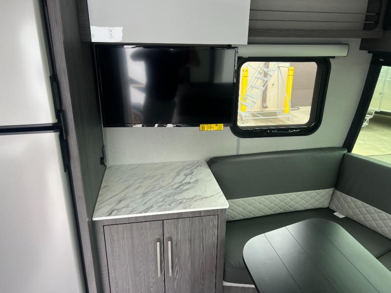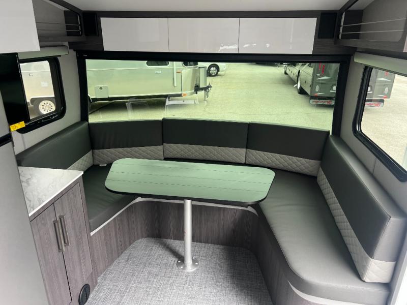 Step inside this travel trailer for fun trips to your state park! There is a front U-shaped dinette that will double as dining and sleeping space for guests, while you enjoy the queen-size bed in the back. You'll find the wet bath to be convenient, especially with its roof vent, mesh shower storage net and porcelain toilet. Each morning you can prepare breakfast on the two burner stainless steel cooktop or in the convection microwave, and there is a 10 cu. ft. 12V refrigerator for your perishables. There are plenty of storage spaces, including overhead cabinets, a nightstand with a drawer, plus a pantry with slide out drawers. This model has a dry weight that ranges from 4,764 lbs. - 5,200 lbs., a tongue weight from 475 lbs. - 500 lbs., and a net carrying capacity from 1,650 lbs. - 1,850 lbs. You may also like to choose the optional Rover Package that includes a 3" lift, an aluminum tube rear bumper, rugged decals, and more!