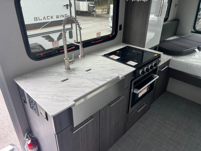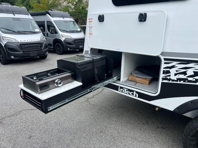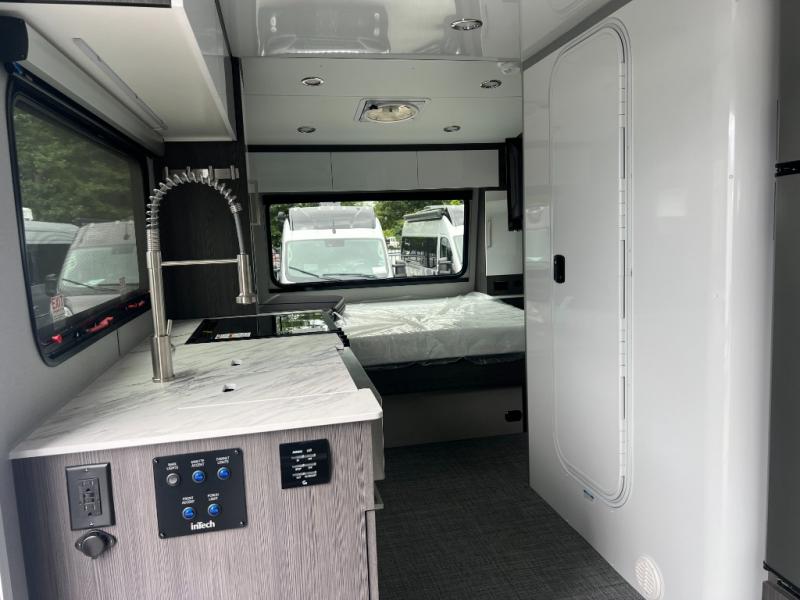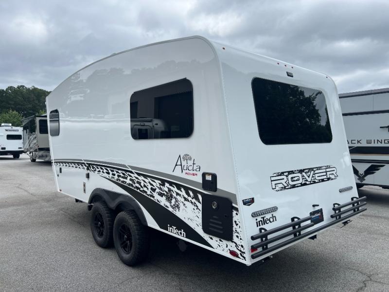 With any Aucta travel trailer by inTech RV you will enjoy creative interior spaces, luxury features, and smart storage spaces for a one-of-a-kind trailer. The one-piece fiberglass roof, all-aluminum cage frame, and Dexter torsion axle provide durable construction and smooth towing, and the fold-away double entry steps and power tongue jack will make set-up easier than ever. Inside, you'll find Infinity woven flooring, a large farmhouse sink, USB ports and 120V outlets, plenty of storage compartments, and MaxxAir vent fans to keep everything fresh. These models also include bubble foil insulation in the walls and ceiling, along with a 25K BTU furnace and a 15K BTU A/C so you can make memories year around!