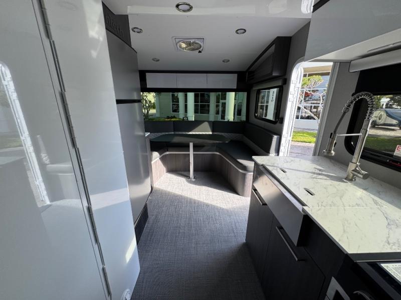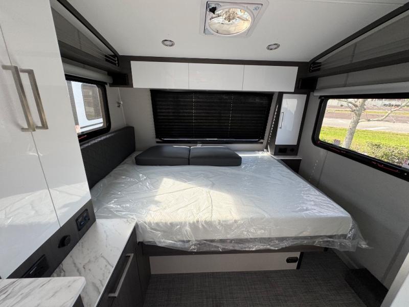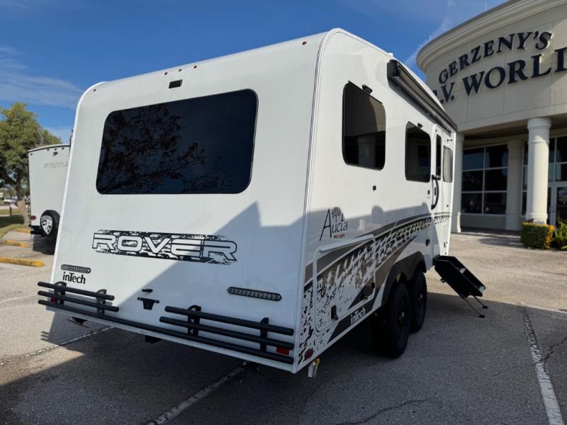 With any Aucta travel trailer by inTech RV you will enjoy creative interior spaces, luxury features, and smart storage spaces for a one-of-a-kind trailer. The one-piece fiberglass roof, all-aluminum cage frame, and Dexter torsion axle provide durable construction and smooth towing, and the fold-away double entry steps and power tongue jack will make set-up easier than ever. Inside, you'll find Infinity woven flooring, a large farmhouse sink, USB ports and 120V outlets, plenty of storage compartments, and MaxxAir vent fans to keep everything fresh. These models also include bubble foil insulation in the walls and ceiling, along with a 25K BTU furnace and a 15K BTU A/C so you can make memories year around!
