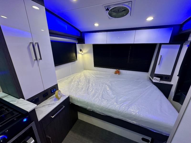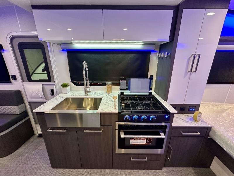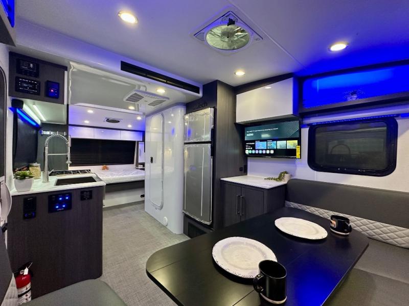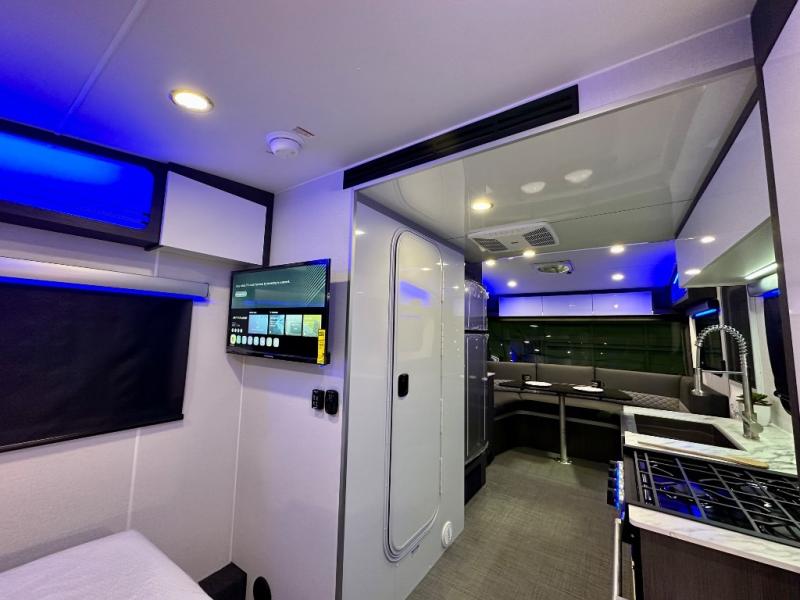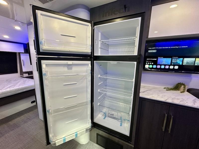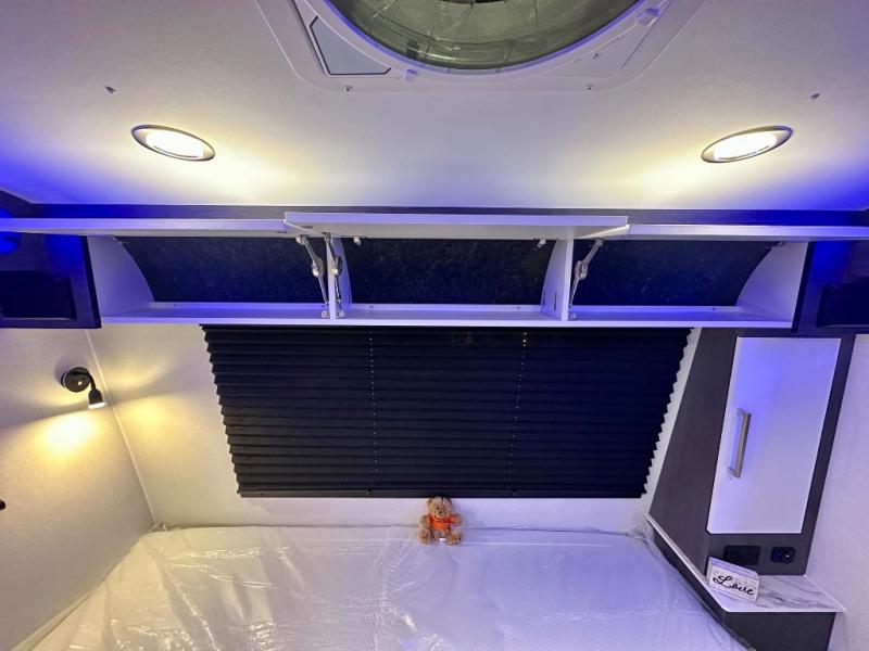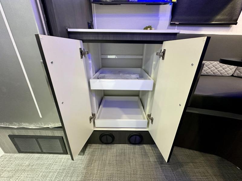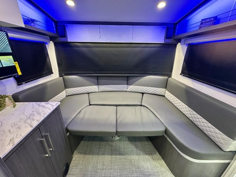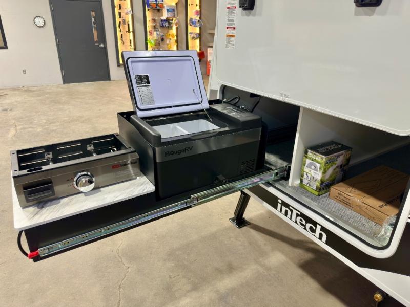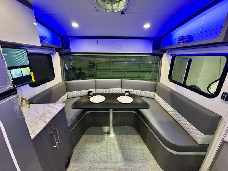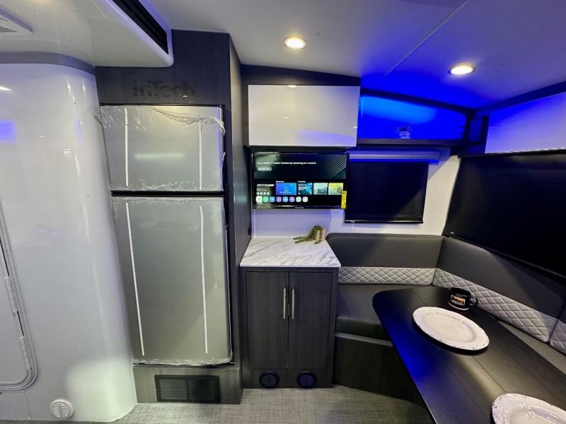 With any Aucta travel trailer by inTech RV you will enjoy creative interior spaces, luxury features, and smart storage spaces for a one-of-a-kind trailer. The one-piece fiberglass roof, all-aluminum cage frame, and Dexter torsion axle provide durable construction and smooth towing, and the fold-away double entry steps and power tongue jack will make set-up easier than ever. Inside, you'll find Infinity woven flooring, a large farmhouse sink, USB ports and 120V outlets, plenty of storage compartments, and MaxxAir vent fans to keep everything fresh. These models also include bubble foil insulation in the walls and ceiling, along with a 25K BTU furnace and a 15K BTU A/C so you can make memories year around!