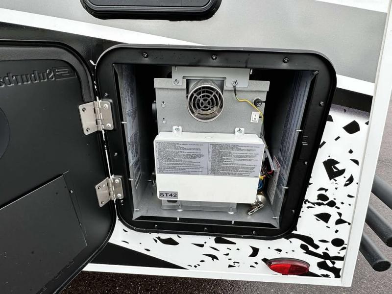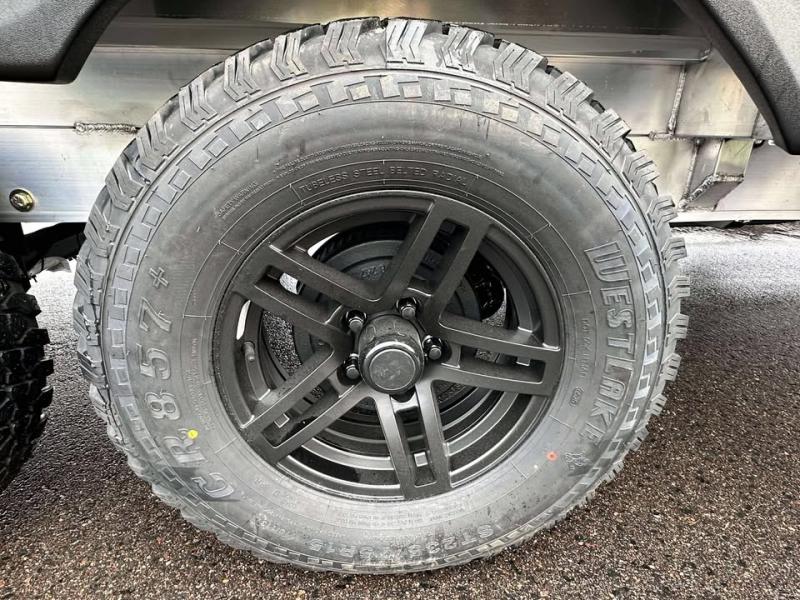 Step inside this travel trailer for fun trips to your state park! There is a front U-shaped dinette that will double as dining and sleeping space for guests, while you enjoy the queen-size bed in the back. You'll find the wet bath to be convenient, especially with its roof vent, mesh shower storage net and porcelain toilet. Each morning you can prepare breakfast on the two burner stainless steel cooktop or in the convection microwave, and there is a 10 cu. ft. 12V refrigerator for your perishables. There are plenty of storage spaces, including overhead cabinets, a nightstand with a drawer, plus a pantry with slide out drawers. This model has a dry weight that ranges from 4,764 lbs. - 5,200 lbs., a tongue weight from 475 lbs. - 500 lbs., and a net carrying capacity from 1,650 lbs. - 1,850 lbs. You may also like to choose the optional Rover Package that includes a 3" lift, an aluminum tube rear bumper, rugged decals, and more!