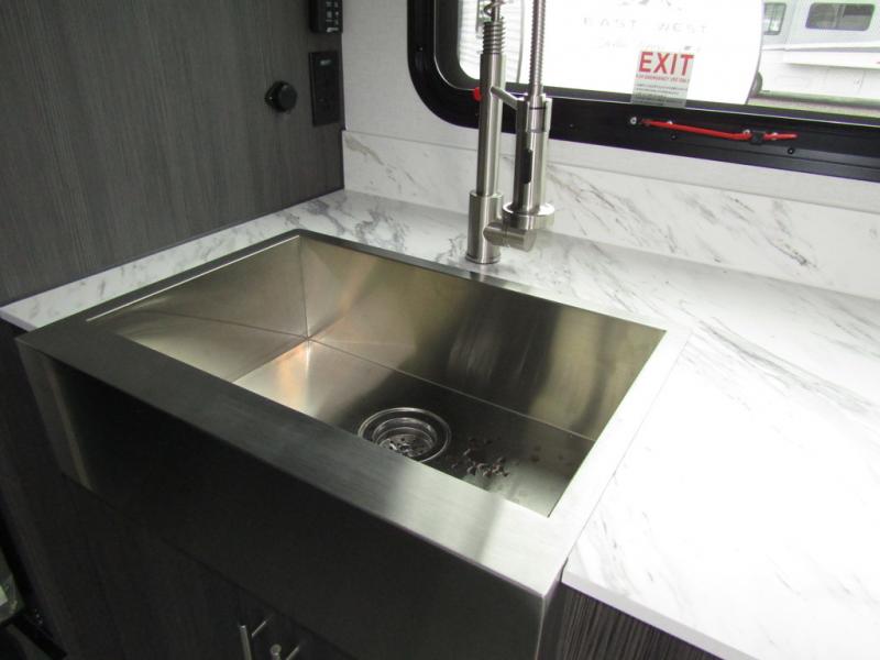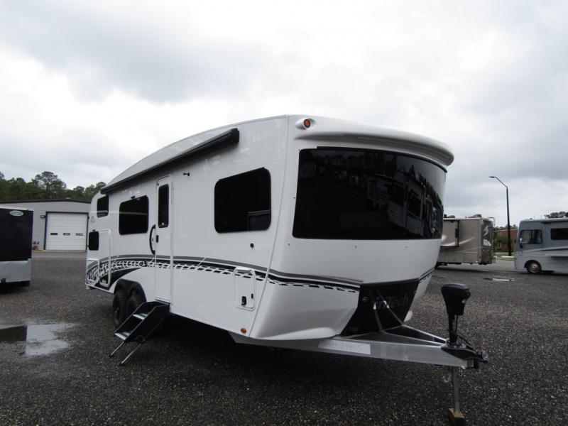 With any Aucta travel trailer by inTech RV you will enjoy creative interior spaces, luxury features, and smart storage spaces for a one-of-a-kind trailer. The one-piece fiberglass roof, all-aluminum cage frame, and Dexter torsion axle provide durable construction and smooth towing, and the fold-away double entry steps and power tongue jack will make set-up easier than ever. Inside, you'll find Infinity woven flooring, a large farmhouse sink, USB ports and 120V outlets, plenty of storage compartments, and MaxxAir vent fans to keep everything fresh. These models also include bubble foil insulation in the walls and ceiling, along with a 25K BTU furnace and a 15K BTU A/C so you can make memories year around!