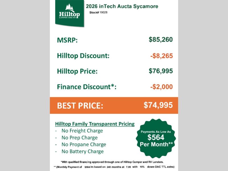 New 2026 inTech RV Aucta Sycamore Travel Trailer