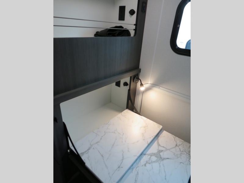 With any Aucta travel trailer by inTech RV you will enjoy creative interior spaces, luxury features, and smart storage spaces for a one-of-a-kind trailer. The one-piece fiberglass roof, all-aluminum cage frame, and Dexter torsion axle provide durable construction and smooth towing, and the fold-away double entry steps and power tongue jack will make set-up easier than ever. Inside, you'll find Infinity woven flooring, a large farmhouse sink, USB ports and 120V outlets, plenty of storage compartments, and MaxxAir vent fans to keep everything fresh. These models also include bubble foil insulation in the walls and ceiling, along with a 25K BTU furnace and a 15K BTU A/C so you can make memories year around!