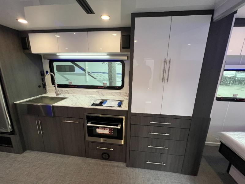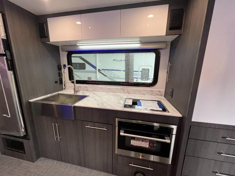 With any Aucta travel trailer by inTech RV you will enjoy creative interior spaces, luxury features, and smart storage spaces for a one-of-a-kind trailer. The one-piece fiberglass roof, all-aluminum cage frame, and Dexter torsion axle provide durable construction and smooth towing, and the fold-away double entry steps and power tongue jack will make set-up easier than ever. Inside, you'll find Infinity woven flooring, a large farmhouse sink, USB ports and 120V outlets, plenty of storage compartments, and MaxxAir vent fans to keep everything fresh. These models also include bubble foil insulation in the walls and ceiling, along with a 25K BTU furnace and a 15K BTU A/C so you can make memories year around!