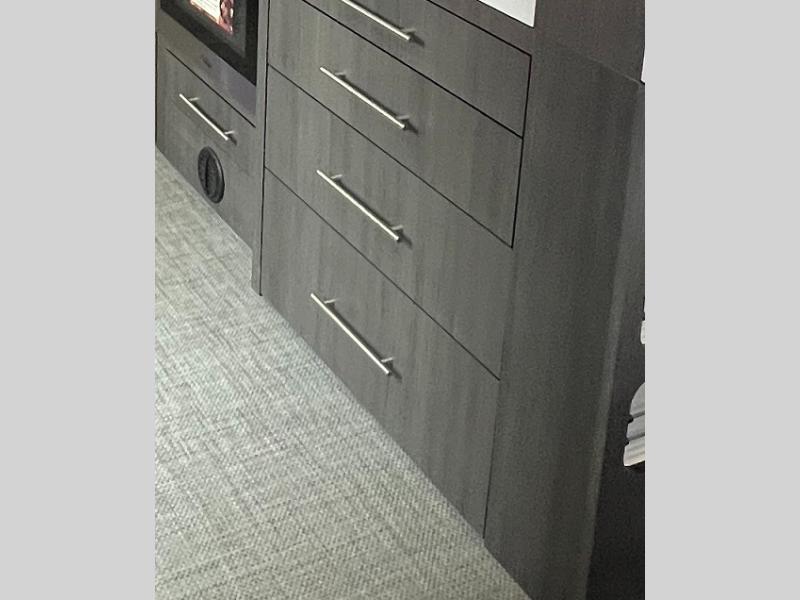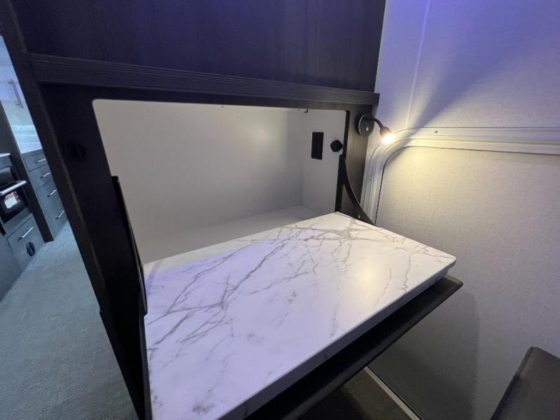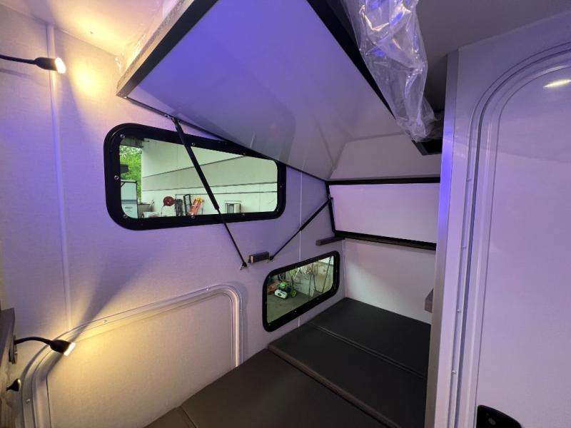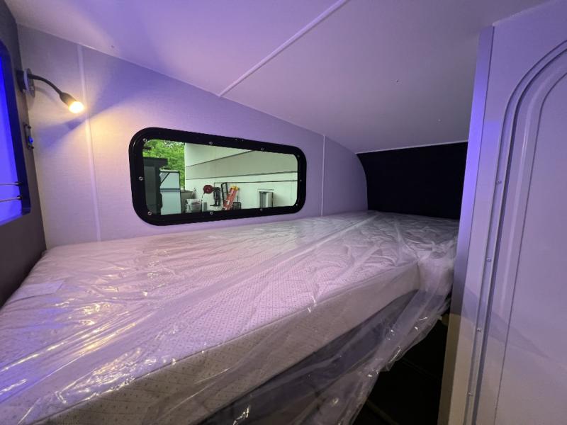 Experience the freedom of the open road in our cozy travel trailer, perfect for families or couples seeking adventure. The full bathroom provides all the essentials for a comfortable stay, and the convenient bunk beds are perfect for kids or guests. The plush sofa is a great spot to relax and unwind after a long day of exploring. The two-burner cooktop allows you to whip up delicious meals on the go, and the 12V refrigerator keeps your food and drinks fresh. The front bedroom is a serene retreat, featuring a spacious queen-size bed and ample storage space. The convection microwave makes cooking and reheating meals a breeze, and the pantry keeps your snacks and ingredients organized. This model also has a dry weight that ranges from 6,750-7,100 lbs., a tongue weight between 700-750 lbs., and a carrying capacity between 2,300-2,650 lbs. You may also like to choose the optional Rover Package that includes a 3" lift, an aluminum tube rear bumper, rugged decals, and more!