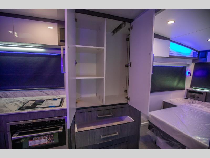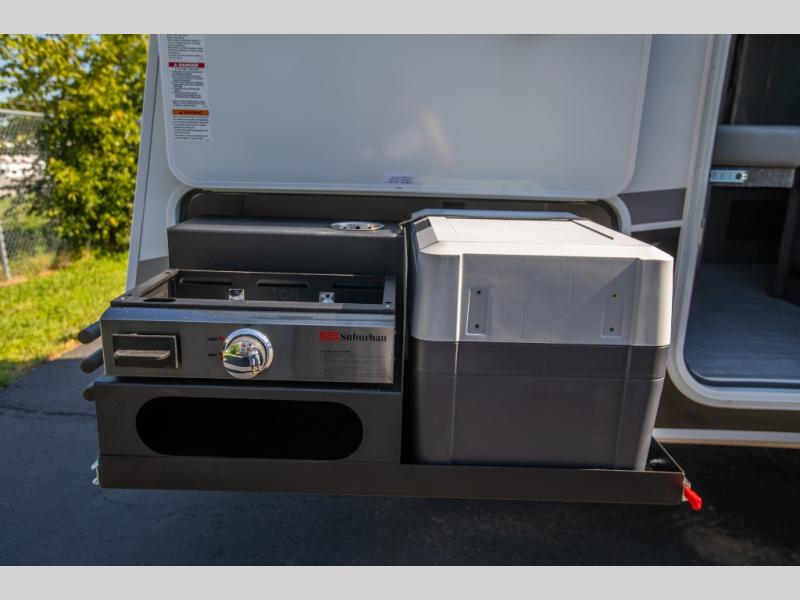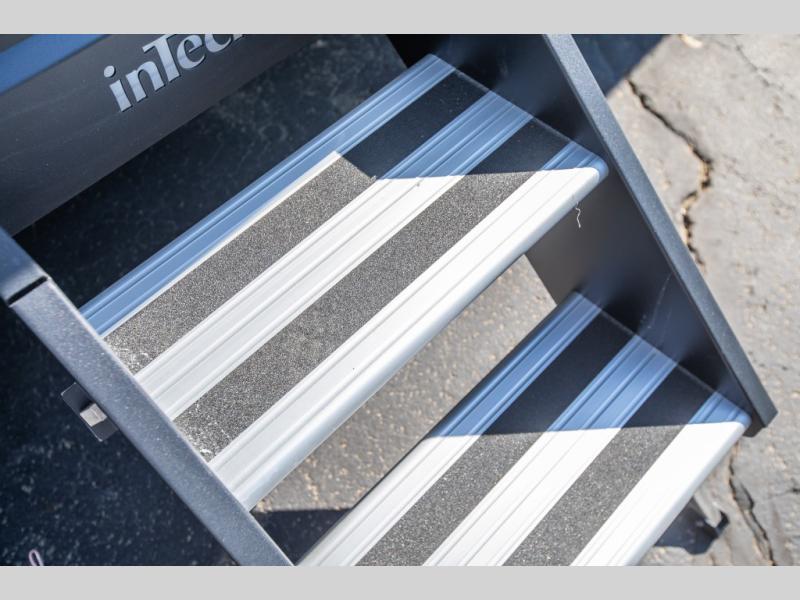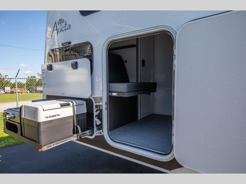 With any Aucta travel trailer by inTech RV you will enjoy creative interior spaces, luxury features, and smart storage spaces for a one-of-a-kind trailer. The one-piece fiberglass roof, all-aluminum cage frame, and Dexter torsion axle provide durable construction and smooth towing, and the fold-away double entry steps and power tongue jack will make set-up easier than ever. Inside, you'll find Infinity woven flooring, a large farmhouse sink, USB ports and 120V outlets, plenty of storage compartments, and MaxxAir vent fans to keep everything fresh. These models also include bubble foil insulation in the walls and ceiling, along with a 25K BTU furnace and a 15K BTU A/C so you can make memories year around!