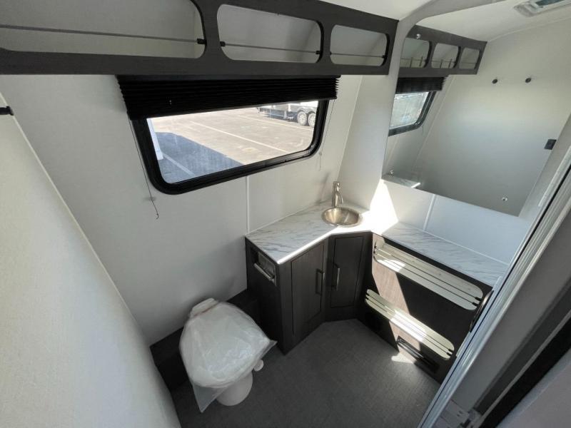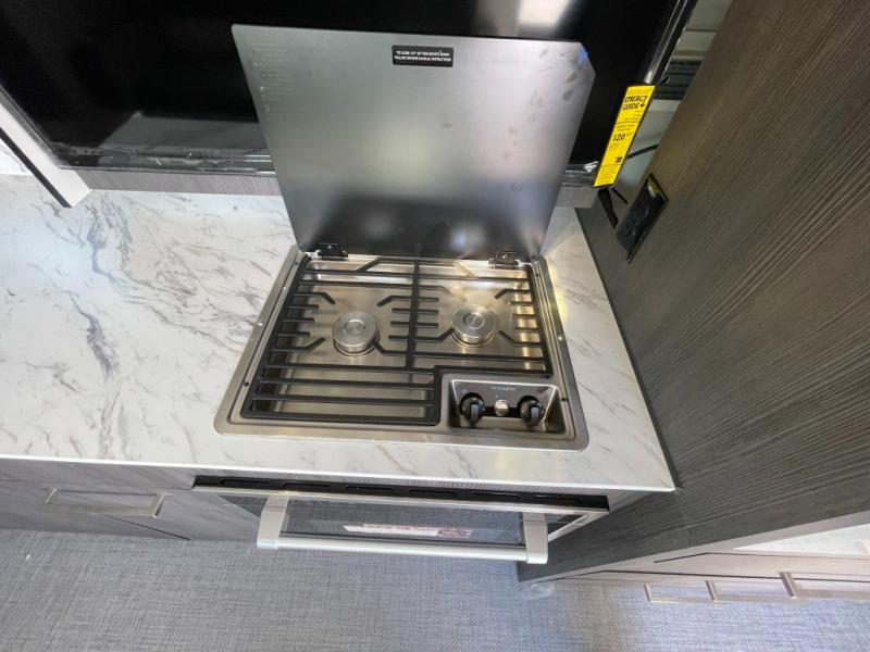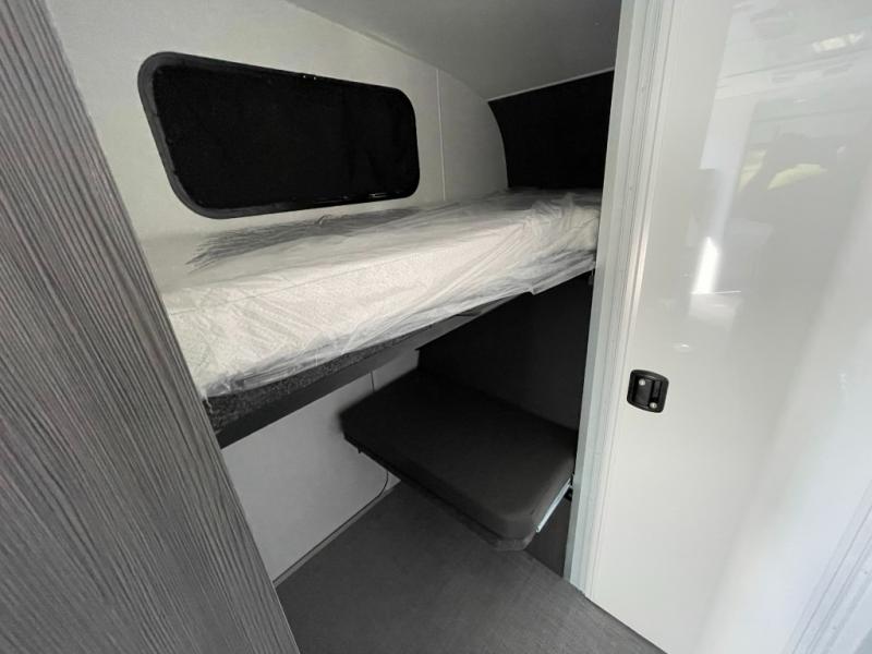 Experience the freedom of the open road in our cozy travel trailer, perfect for families or couples seeking adventure. The full bathroom provides all the essentials for a comfortable stay, and the convenient bunk beds are perfect for kids or guests. The plush sofa is a great spot to relax and unwind after a long day of exploring. The two-burner cooktop allows you to whip up delicious meals on the go, and the 12V refrigerator keeps your food and drinks fresh. The front bedroom is a serene retreat, featuring a spacious queen-size bed and ample storage space. The convection microwave makes cooking and reheating meals a breeze, and the pantry keeps your snacks and ingredients organized. This model also has a dry weight that ranges from 6,750-7,100 lbs., a tongue weight between 700-750 lbs., and a carrying capacity between 2,300-2,650 lbs. You may also like to choose the optional Rover Package that includes a 3" lift, an aluminum tube rear bumper, rugged decals, and more!