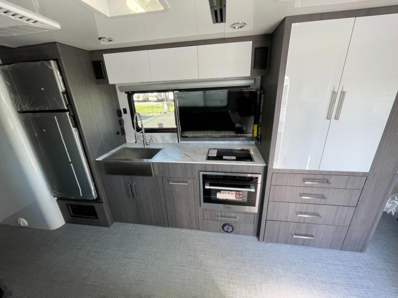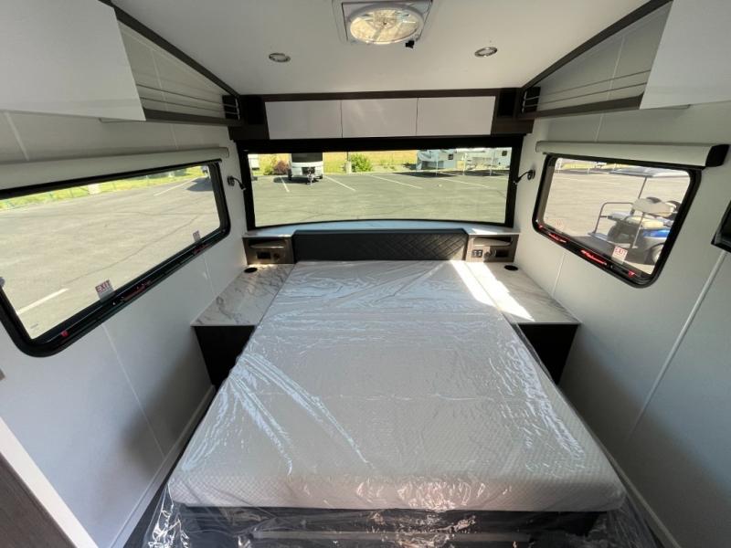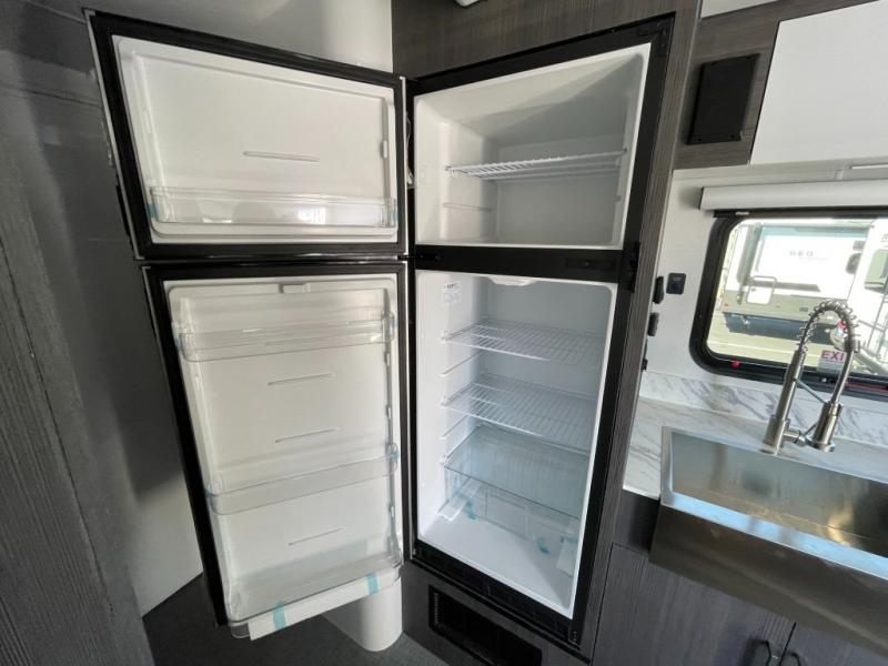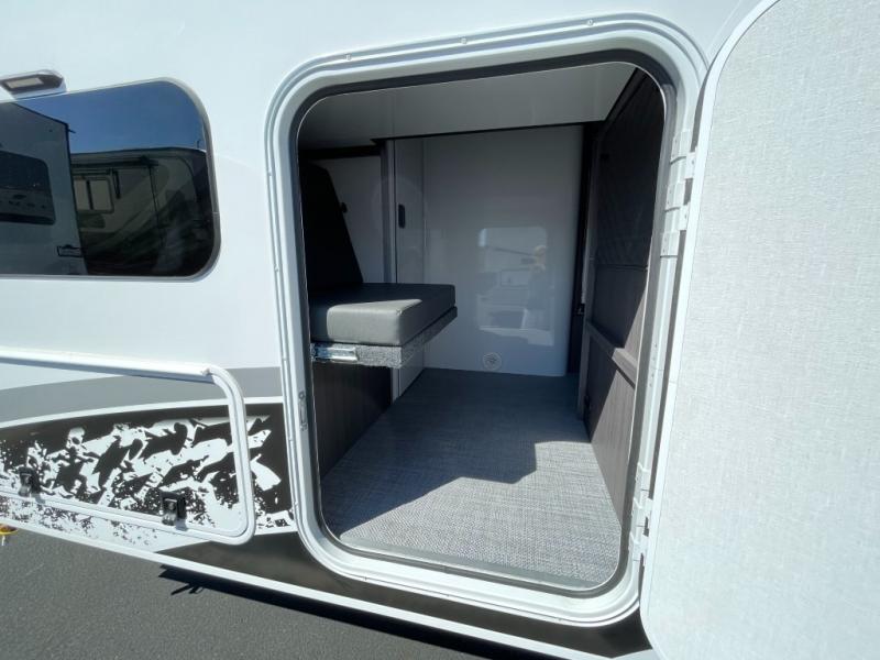 With any Aucta travel trailer by inTech RV you will enjoy creative interior spaces, luxury features, and smart storage spaces for a one-of-a-kind trailer. The one-piece fiberglass roof, all-aluminum cage frame, and Dexter torsion axle provide durable construction and smooth towing, and the fold-away double entry steps and power tongue jack will make set-up easier than ever. Inside, you'll find Infinity woven flooring, a large farmhouse sink, USB ports and 120V outlets, plenty of storage compartments, and MaxxAir vent fans to keep everything fresh. These models also include bubble foil insulation in the walls and ceiling, along with a 25K BTU furnace and a 15K BTU A/C so you can make memories year around!