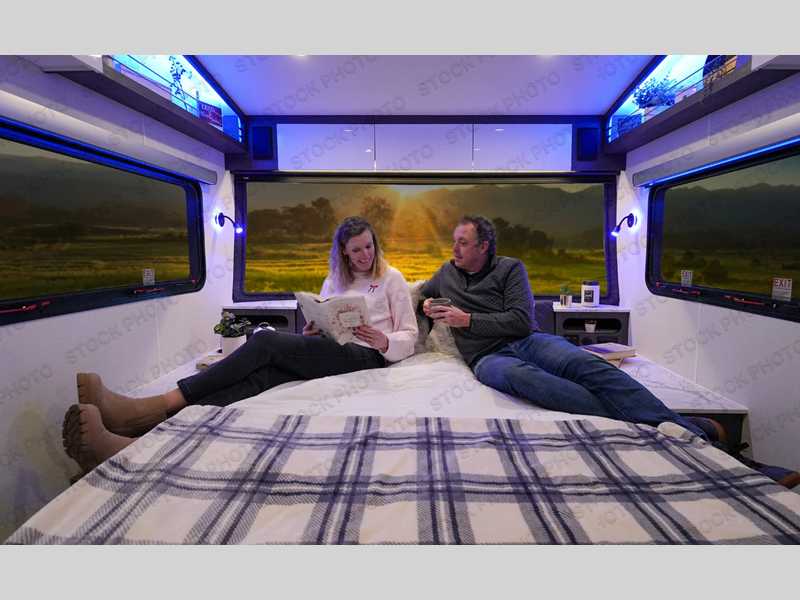 Experience the freedom of the open road in our cozy travel trailer, perfect for families or couples seeking adventure. The full bathroom provides all the essentials for a comfortable stay, and the convenient bunk beds are perfect for kids or guests. The plush sofa is a great spot to relax and unwind after a long day of exploring. The two-burner cooktop allows you to whip up delicious meals on the go, and the 12V refrigerator keeps your food and drinks fresh. The front bedroom is a serene retreat, featuring a spacious queen-size bed and ample storage space. The convection microwave makes cooking and reheating meals a breeze, and the pantry keeps your snacks and ingredients organized. This model also has a dry weight that ranges from 6,750-7,100 lbs., a tongue weight between 700-750 lbs., and a carrying capacity between 2,300-2,650 lbs. You may also like to choose the optional Rover Package that includes a 3" lift, an aluminum tube rear bumper, rugged decals, and more!