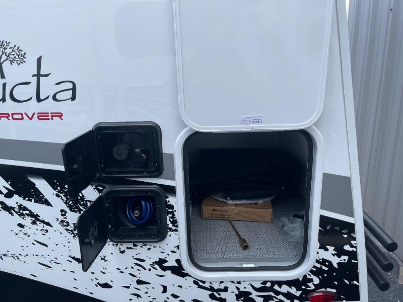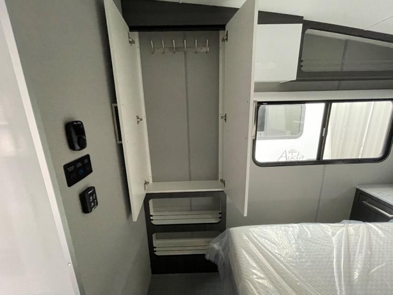 With any Aucta travel trailer by inTech RV you will enjoy creative interior spaces, luxury features, and smart storage spaces for a one-of-a-kind trailer. The one-piece fiberglass roof, all-aluminum cage frame, and Dexter torsion axle provide durable construction and smooth towing, and the fold-away double entry steps and power tongue jack will make set-up easier than ever. Inside, you'll find Infinity woven flooring, a large farmhouse sink, USB ports and 120V outlets, plenty of storage compartments, and MaxxAir vent fans to keep everything fresh. These models also include bubble foil insulation in the walls and ceiling, along with a 25K BTU furnace and a 15K BTU A/C so you can make memories year around!