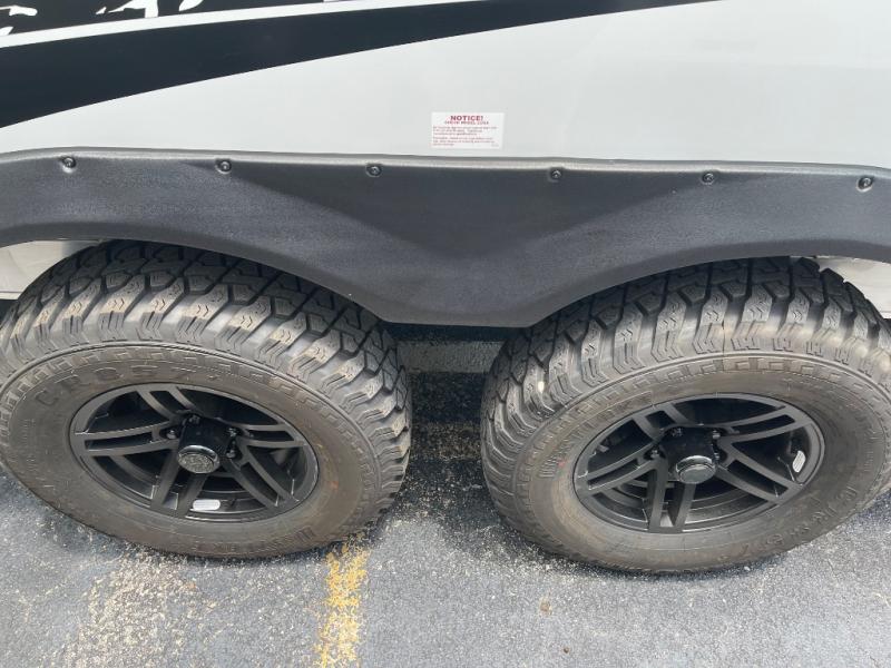 Pack your bags for a new adventure in this Willow travel trailer. You and your spouse or camping friend will love the natural light that streams in from the panoramic windows as you relax on the U-shaped dinette. Prepare meals each day on the two burner stainless steel cooktop or use the convection microwave, and you'll find plenty of overhead cabinets for all your necessities. This model features a private toilet and sink, with the shower right across the hall so two people can freshen up at once. When it's time to call it a night, you can rest comfortably on the walk-around queen bed, and the 32" bedroom TV will allow you to watch a late-night movie in bed! If you like to have your own space at night, just choose the optional twin beds! This model also has a dry weight that ranges from 5,650-5,850 lbs., a tongue weight between 725-790 lbs., and a carrying capacity between 1,650-1,850 lbs. You may also like to choose the optional Rover Package that includes a 3" lift, an aluminum tube rear bumper, rugged decals, and more!