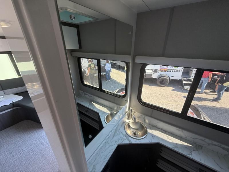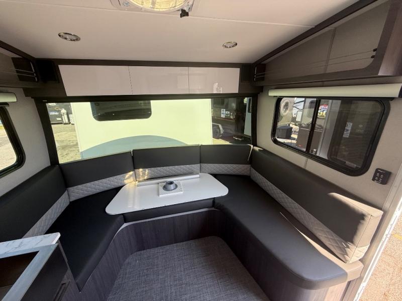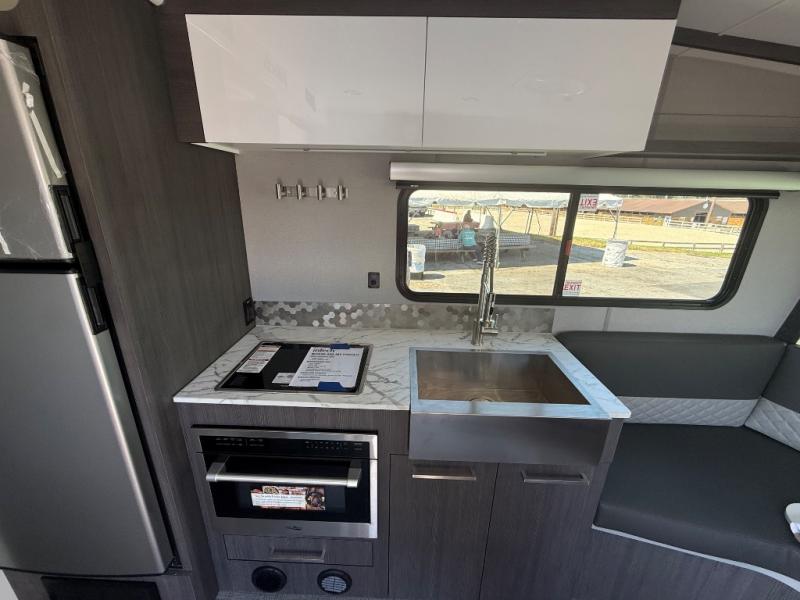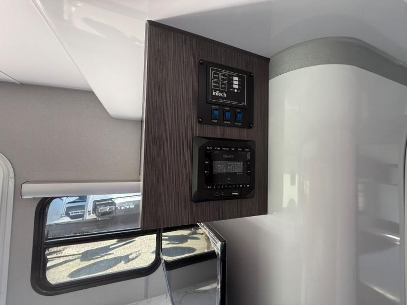 With any Aucta travel trailer by inTech RV you will enjoy creative interior spaces, luxury features, and smart storage spaces for a one-of-a-kind trailer. The one-piece fiberglass roof, all-aluminum cage frame, and Dexter torsion axle provide durable construction and smooth towing, and the fold-away double entry steps and power tongue jack will make set-up easier than ever. Inside, you'll find Infinity woven flooring, a large farmhouse sink, USB ports and 120V outlets, plenty of storage compartments, and MaxxAir vent fans to keep everything fresh. These models also include bubble foil insulation in the walls and ceiling, along with a 25K BTU furnace and a 15K BTU A/C so you can make memories year around!