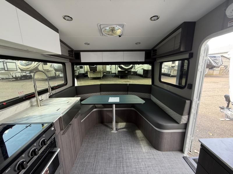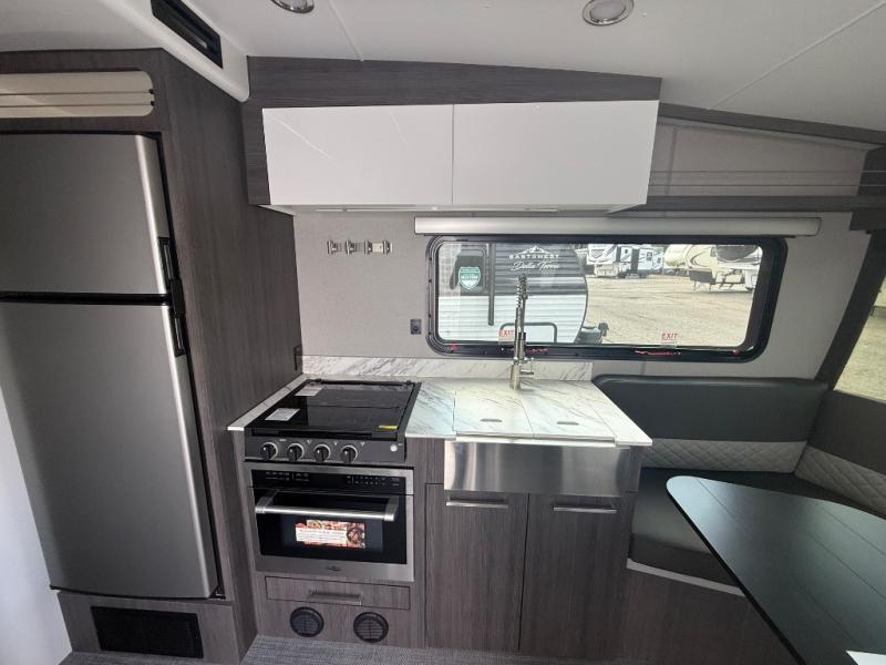 With any Aucta travel trailer by inTech RV you will enjoy creative interior spaces, luxury features, and smart storage spaces for a one-of-a-kind trailer. The one-piece fiberglass roof, all-aluminum cage frame, and Dexter torsion axle provide durable construction and smooth towing, and the fold-away double entry steps and power tongue jack will make set-up easier than ever. Inside, you'll find Infinity woven flooring, a large farmhouse sink, USB ports and 120V outlets, plenty of storage compartments, and MaxxAir vent fans to keep everything fresh. These models also include bubble foil insulation in the walls and ceiling, along with a 25K BTU furnace and a 15K BTU A/C so you can make memories year around!