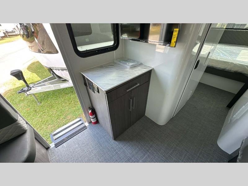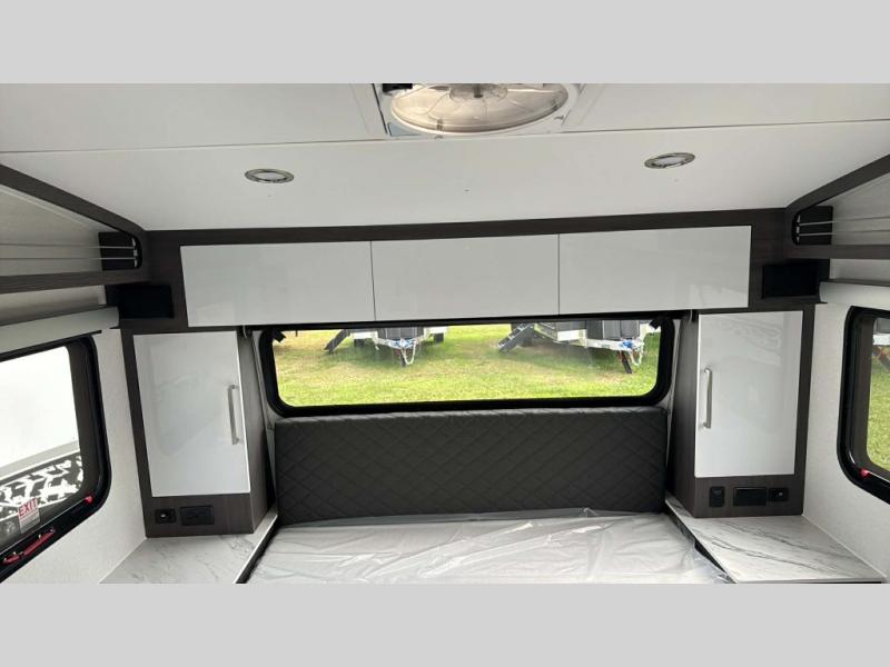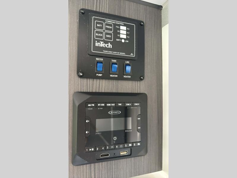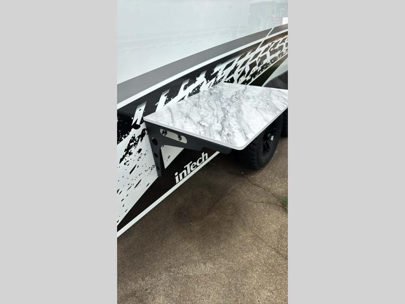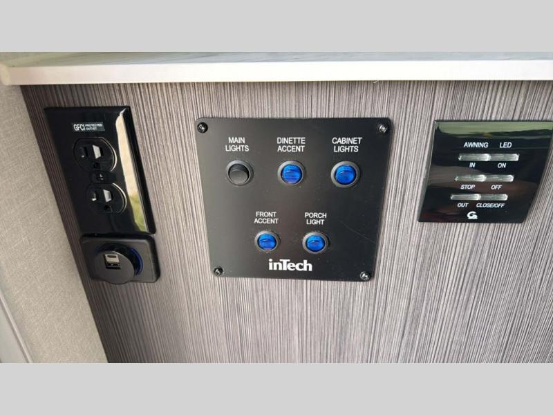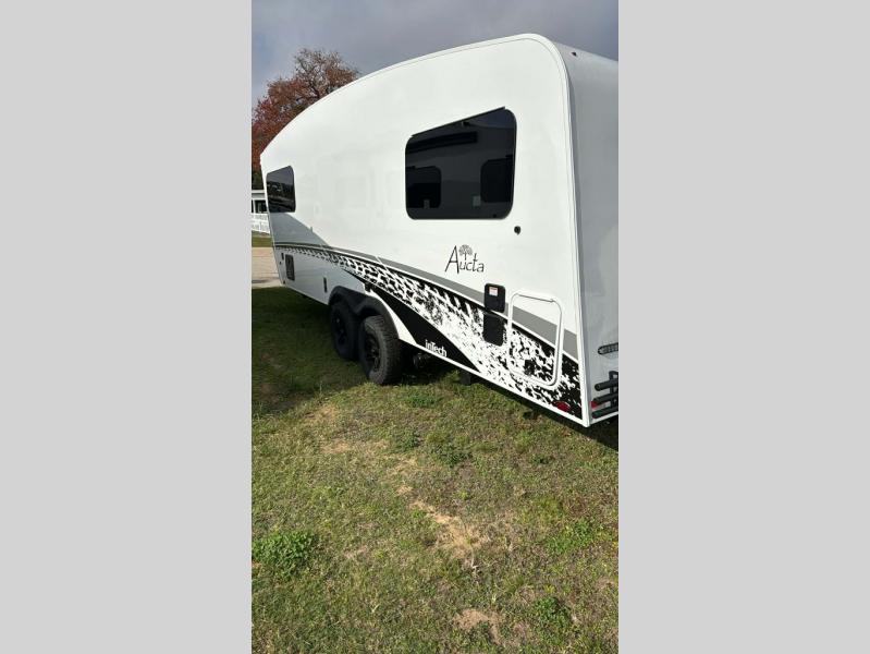 With any Aucta travel trailer by inTech RV you will enjoy creative interior spaces, luxury features, and smart storage spaces for a one-of-a-kind trailer. The one-piece fiberglass roof, all-aluminum cage frame, and Dexter torsion axle provide durable construction and smooth towing, and the fold-away double entry steps and power tongue jack will make set-up easier than ever. Inside, you'll find Infinity woven flooring, a large farmhouse sink, USB ports and 120V outlets, plenty of storage compartments, and MaxxAir vent fans to keep everything fresh. These models also include bubble foil insulation in the walls and ceiling, along with a 25K BTU furnace and a 15K BTU A/C so you can make memories year around!