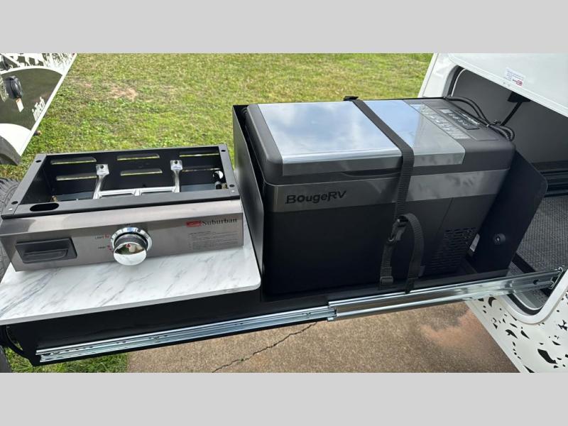 Pack your bags for a new adventure in this Willow travel trailer. You and your spouse or camping friend will love the natural light that streams in from the panoramic windows as you relax on the U-shaped dinette. Prepare meals each day on the two burner stainless steel cooktop or use the convection microwave, and you'll find plenty of overhead cabinets for all your necessities. This model features a private toilet and sink, with the shower right across the hall so two people can freshen up at once. When it's time to call it a night, you can rest comfortably on the walk-around queen bed, and the 32" bedroom TV will allow you to watch a late-night movie in bed! If you like to have your own space at night, just choose the optional twin beds! This model also has a dry weight that ranges from 5,650-5,850 lbs., a tongue weight between 725-790 lbs., and a carrying capacity between 1,650-1,850 lbs. You may also like to choose the optional Rover Package that includes a 3" lift, an aluminum tube rear bumper, rugged decals, and more!