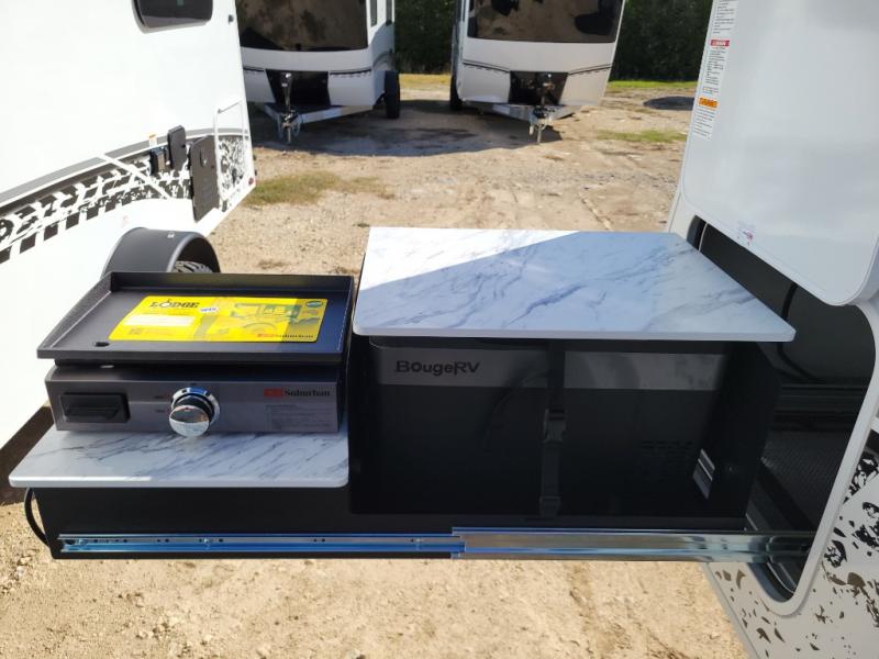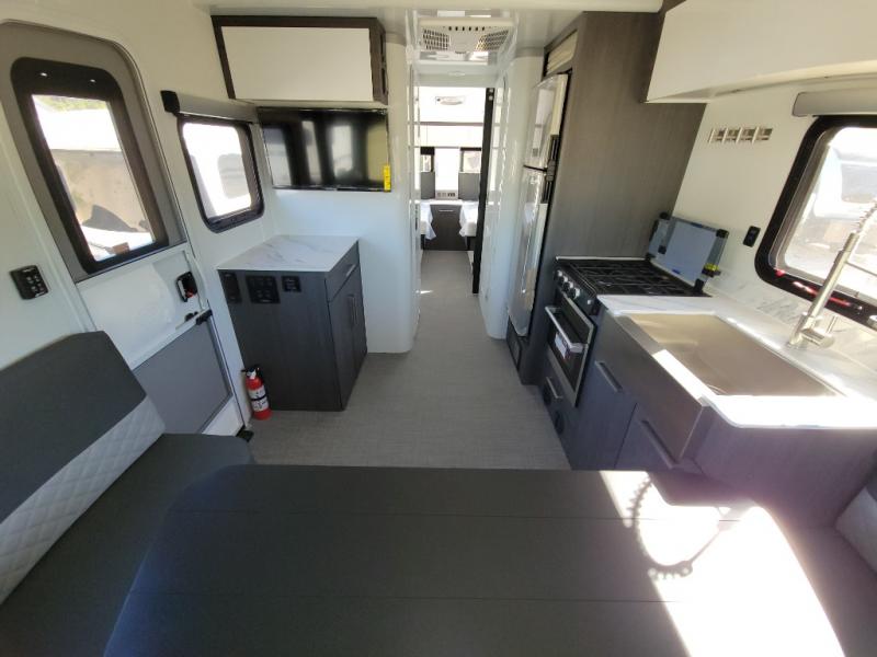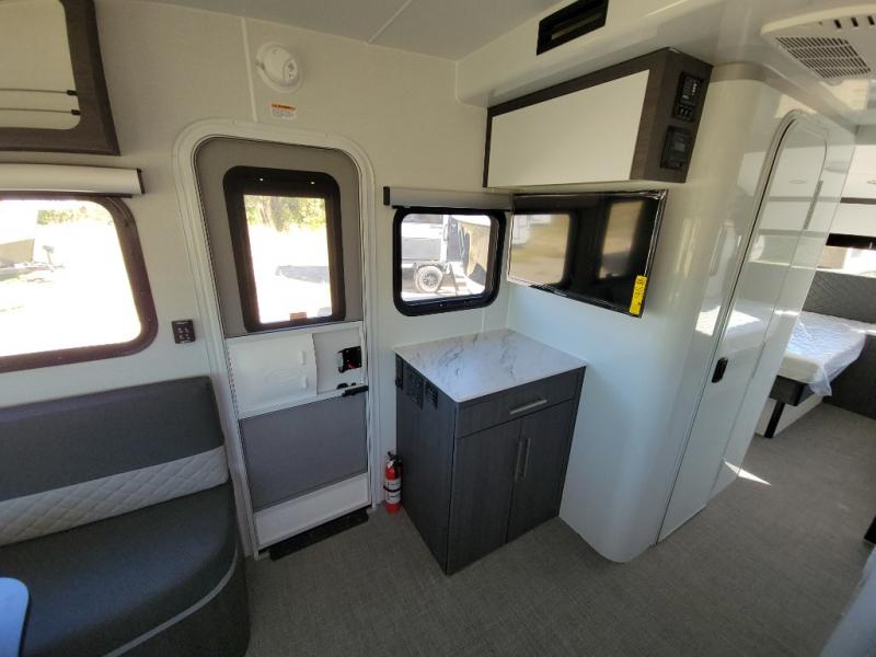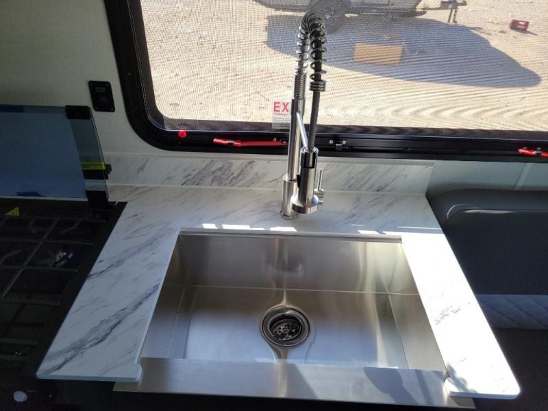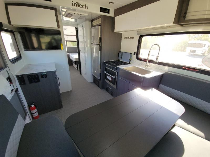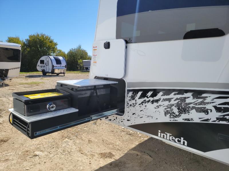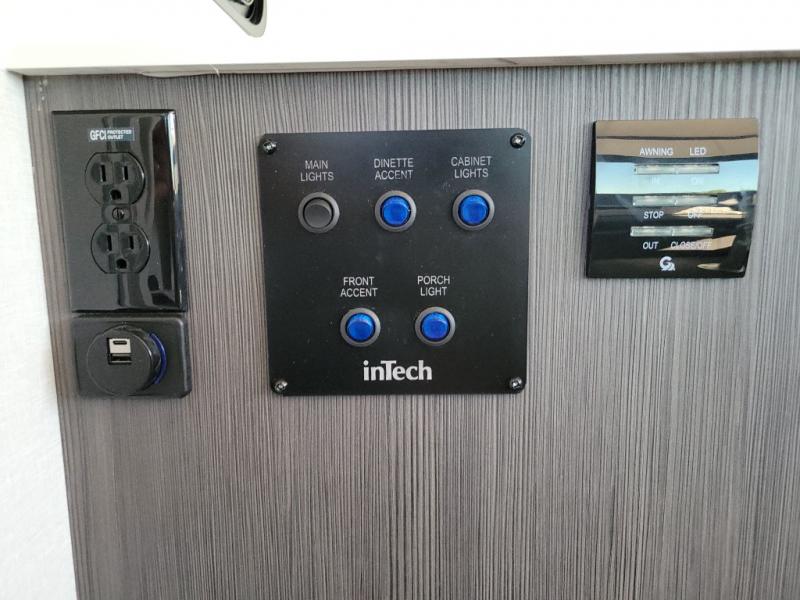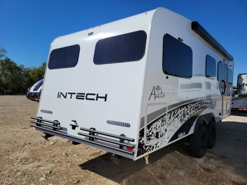 With any Aucta travel trailer by inTech RV you will enjoy creative interior spaces, luxury features, and smart storage spaces for a one-of-a-kind trailer. The one-piece fiberglass roof, all-aluminum cage frame, and Dexter torsion axle provide durable construction and smooth towing, and the fold-away double entry steps and power tongue jack will make set-up easier than ever. Inside, you'll find Infinity woven flooring, a large farmhouse sink, USB ports and 120V outlets, plenty of storage compartments, and MaxxAir vent fans to keep everything fresh. These models also include bubble foil insulation in the walls and ceiling, along with a 25K BTU furnace and a 15K BTU A/C so you can make memories year around!