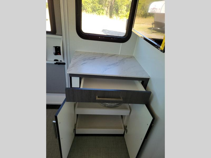 Pack your bags for a new adventure in this Willow travel trailer. You and your spouse or camping friend will love the natural light that streams in from the panoramic windows as you relax on the U-shaped dinette. Prepare meals each day on the two burner stainless steel cooktop or use the convection microwave, and you'll find plenty of overhead cabinets for all your necessities. This model features a private toilet and sink, with the shower right across the hall so two people can freshen up at once. When it's time to call it a night, you can rest comfortably on the walk-around queen bed, and the 32" bedroom TV will allow you to watch a late-night movie in bed! If you like to have your own space at night, just choose the optional twin beds! This model also has a dry weight that ranges from 5,650-5,850 lbs., a tongue weight between 725-790 lbs., and a carrying capacity between 1,650-1,850 lbs. You may also like to choose the optional Rover Package that includes a 3" lift, an aluminum tube rear bumper, rugged decals, and more!