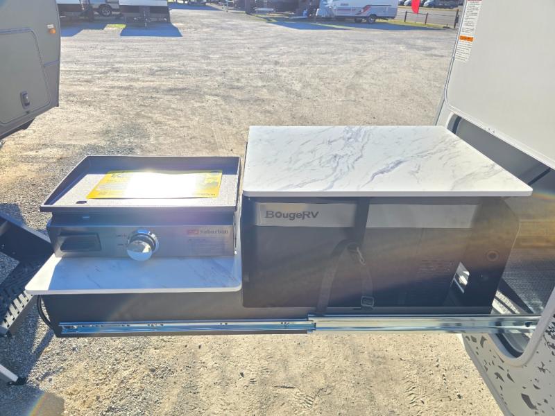 Pack your bags for a new adventure in this Willow travel trailer. You and your spouse or camping friend will love the natural light that streams in from the panoramic windows as you relax on the U-shaped dinette. Prepare meals each day on the two burner stainless steel cooktop or use the convection microwave, and you'll find plenty of overhead cabinets for all your necessities. This model features a private toilet and sink, with the shower right across the hall so two people can freshen up at once. When it's time to call it a night, you can rest comfortably on the walk-around queen bed, and the 32" bedroom TV will allow you to watch a late-night movie in bed! If you like to have your own space at night, just choose the optional twin beds! This model also has a dry weight that ranges from 5,650-5,850 lbs., a tongue weight between 725-790 lbs., and a carrying capacity between 1,650-1,850 lbs. You may also like to choose the optional Rover Package that includes a 3" lift, an aluminum tube rear bumper, rugged decals, and more!