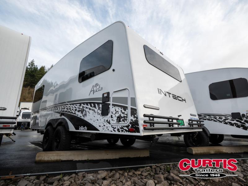 With any Aucta travel trailer by inTech RV you will enjoy creative interior spaces, luxury features, and smart storage spaces for a one-of-a-kind trailer. The one-piece fiberglass roof, all-aluminum cage frame, and Dexter torsion axle provide durable construction and smooth towing, and the fold-away double entry steps and power tongue jack will make set-up easier than ever. Inside, you'll find Infinity woven flooring, a large farmhouse sink, USB ports and 120V outlets, plenty of storage compartments, and MaxxAir vent fans to keep everything fresh. These models also include bubble foil insulation in the walls and ceiling, along with a 25K BTU furnace and a 15K BTU A/C so you can make memories year around!