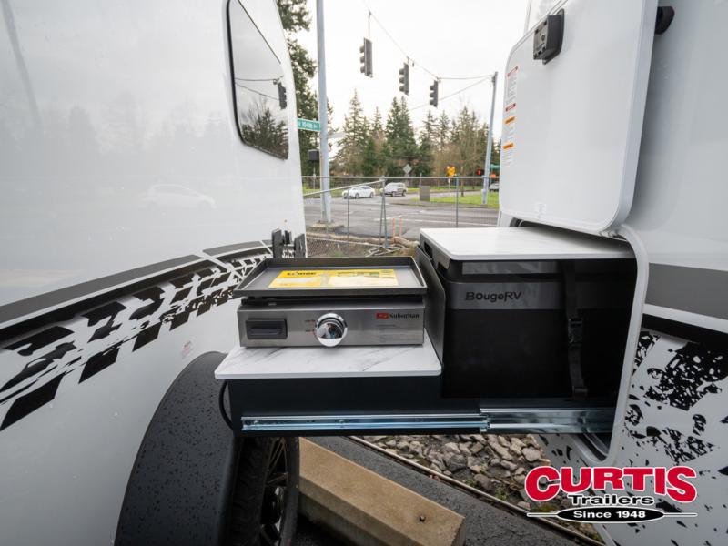 Pack your bags for a new adventure in this Willow travel trailer. You and your spouse or camping friend will love the natural light that streams in from the panoramic windows as you relax on the U-shaped dinette. Prepare meals each day on the two burner stainless steel cooktop or use the convection microwave, and you'll find plenty of overhead cabinets for all your necessities. This model features a private toilet and sink, with the shower right across the hall so two people can freshen up at once. When it's time to call it a night, you can rest comfortably on the walk-around queen bed, and the 32" bedroom TV will allow you to watch a late-night movie in bed! If you like to have your own space at night, just choose the optional twin beds! This model also has a dry weight that ranges from 5,650-5,850 lbs., a tongue weight between 725-790 lbs., and a carrying capacity between 1,650-1,850 lbs. You may also like to choose the optional Rover Package that includes a 3" lift, an aluminum tube rear bumper, rugged decals, and more!