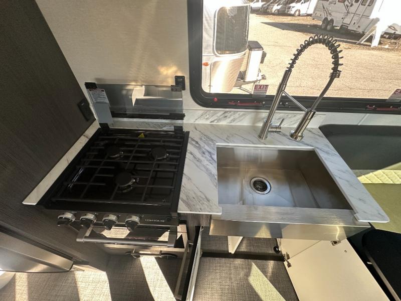 With any Aucta travel trailer by inTech RV you will enjoy creative interior spaces, luxury features, and smart storage spaces for a one-of-a-kind trailer. The one-piece fiberglass roof, all-aluminum cage frame, and Dexter torsion axle provide durable construction and smooth towing, and the fold-away double entry steps and power tongue jack will make set-up easier than ever. Inside, you'll find Infinity woven flooring, a large farmhouse sink, USB ports and 120V outlets, plenty of storage compartments, and MaxxAir vent fans to keep everything fresh. These models also include bubble foil insulation in the walls and ceiling, along with a 25K BTU furnace and a 15K BTU A/C so you can make memories year around!