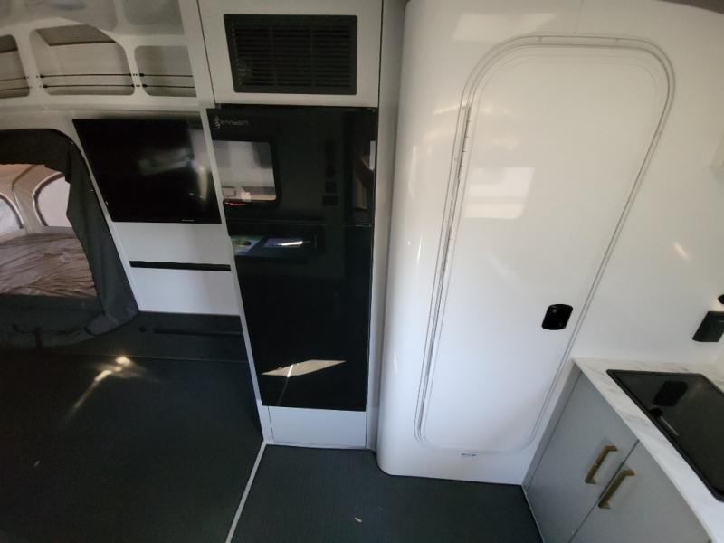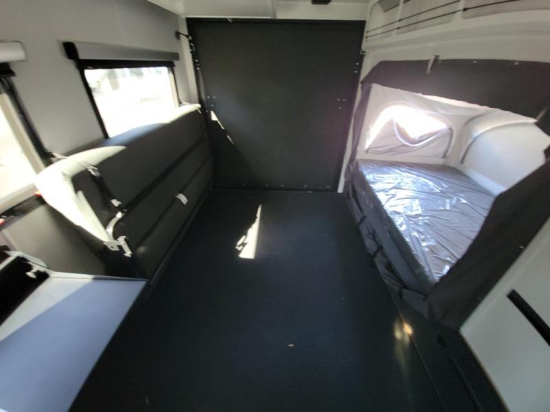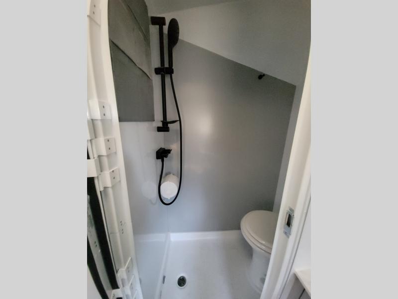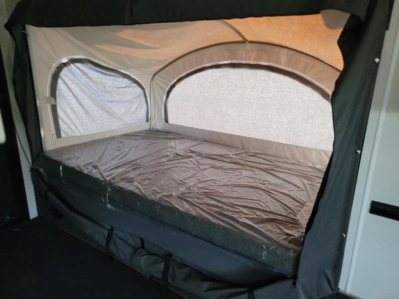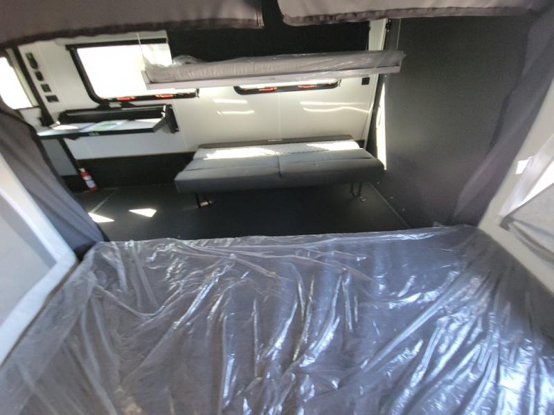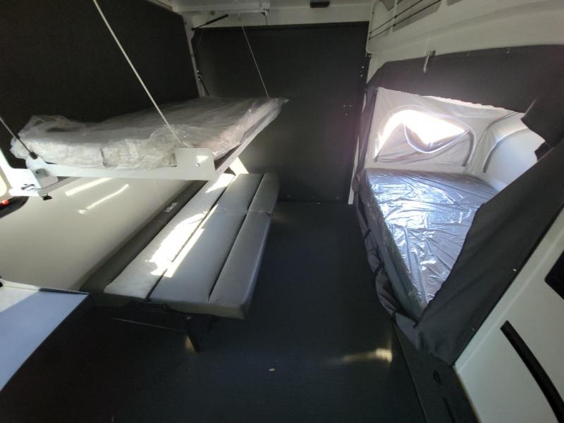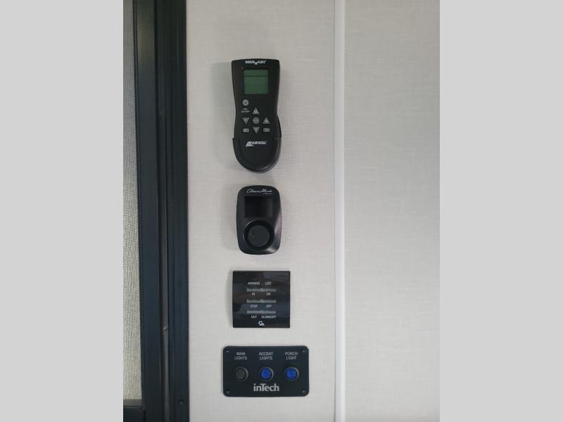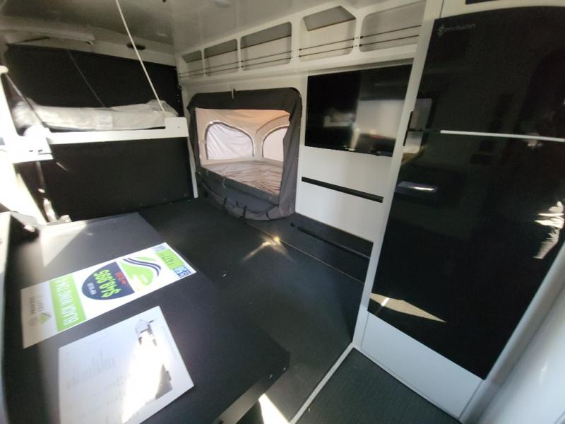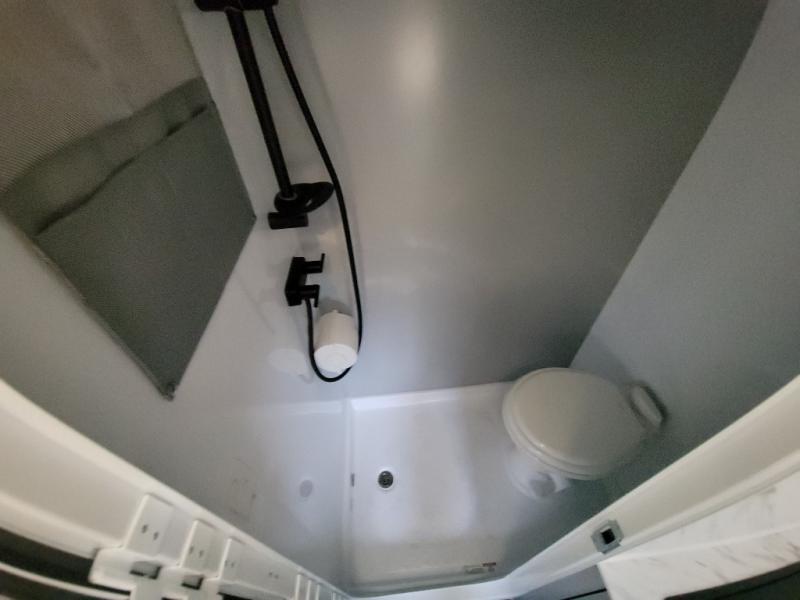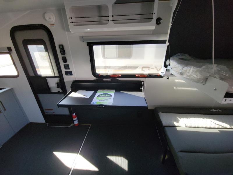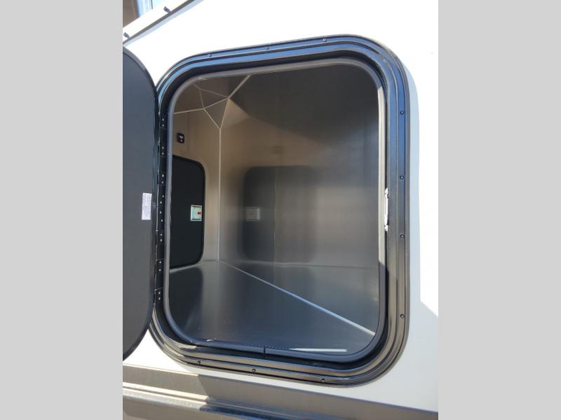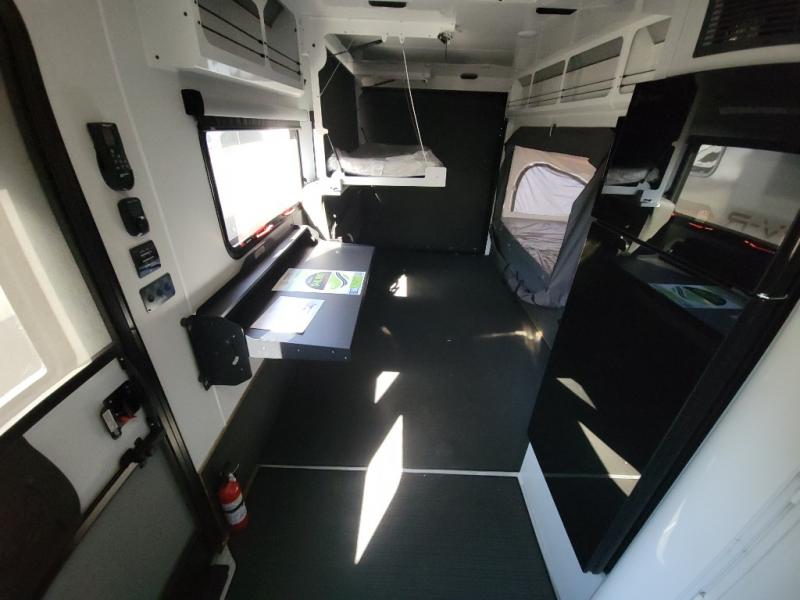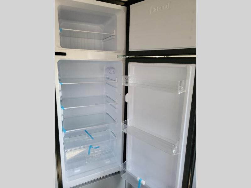 With any Black Wing toy hauler travel trailer by inTech RV, you will durable construction thanks to the fully welded cage and frame construction. There is also a one-piece aluminum roof, a power tongue jack, and solar prep outside for off-grid capabilities. The interior features ample storage space, a MaxxAir vent, a large farmhouse style sink with a gold faucet, and a Bluetooth stereo plus a Smart TV to keep you entertained. Additional features include USB and 120V outlets, an on-demand water heater, aluminum garage flooring, and available options to further customize your toy hauler!