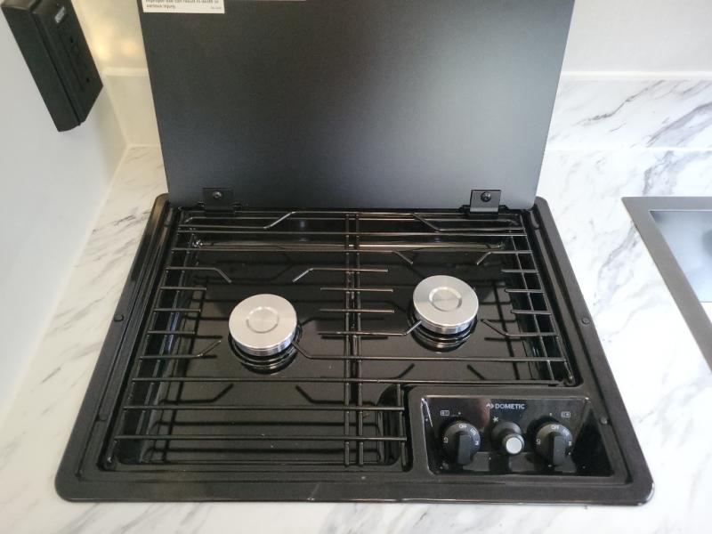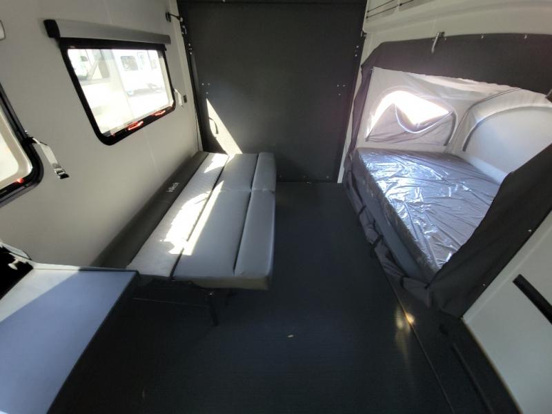 Spend your days riding the trails and your evenings in comfort with this toy hauler! The convenient wet bath includes a porcelain toilet, roof vent and aluminum walls with a sealing exterior door so water doesn't get out into the main living area. You can whip up your best meals on the two burner cooktop and keep leftovers in the 8 cu. ft. 12V refrigerator. A tip-out bed and 76" sofa/bed provide comfortable sleeping spaces, and an optional drop-down bunk can be added if you need additional space. You might also like to add the optional 12' power awning outside as well for even more convenience! This model has a dry weight that ranges from 4,000 lb.- 4,500 lbs., and a carrying capacity of 2,500 lbs.-3,000 lbs.
