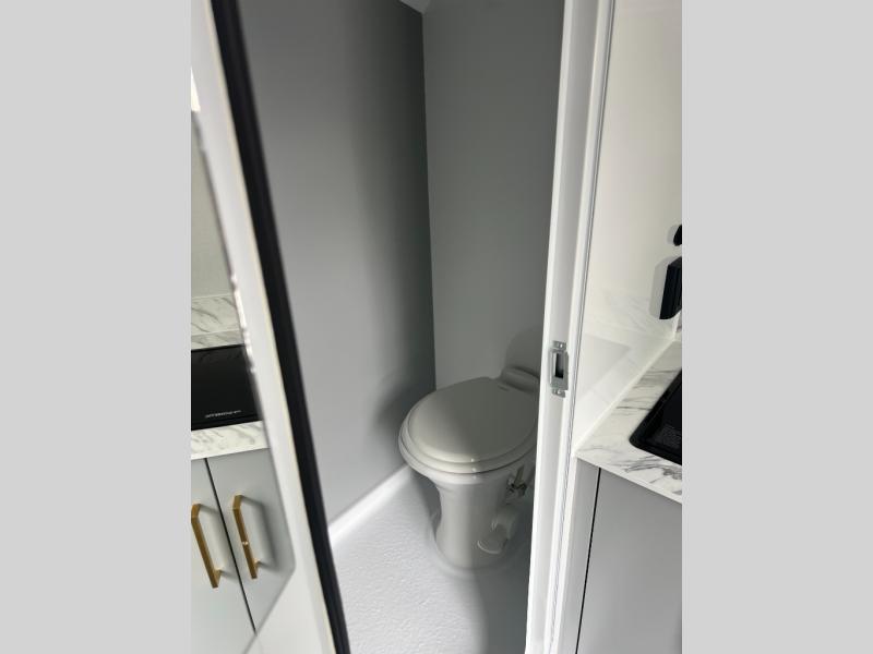 With any Black Wing toy hauler travel trailer by inTech RV, you will durable construction thanks to the fully welded cage and frame construction. There is also a one-piece aluminum roof, a power tongue jack, and solar prep outside for off-grid capabilities. The interior features ample storage space, a MaxxAir vent, a large farmhouse style sink with a gold faucet, and a Bluetooth stereo plus a Smart TV to keep you entertained. Additional features include USB and 120V outlets, an on-demand water heater, aluminum garage flooring, and available options to further customize your toy hauler!