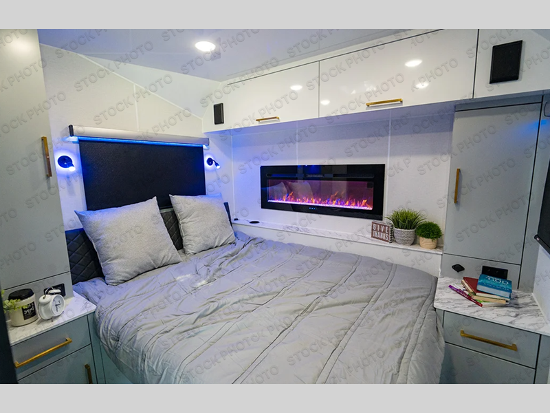 With any Black Wing toy hauler travel trailer by inTech RV, you will durable construction thanks to the fully welded cage and frame construction. There is also a one-piece aluminum roof, a power tongue jack, and solar prep outside for off-grid capabilities. The interior features ample storage space, a MaxxAir vent, a large farmhouse style sink with a gold faucet, and a Bluetooth stereo plus a Smart TV to keep you entertained. Additional features include USB and 120V outlets, an on-demand water heater, aluminum garage flooring, and available options to further customize your toy hauler!