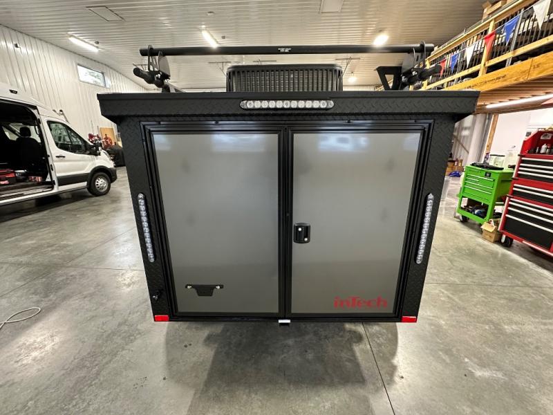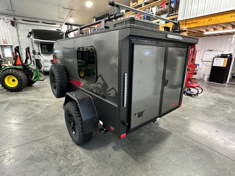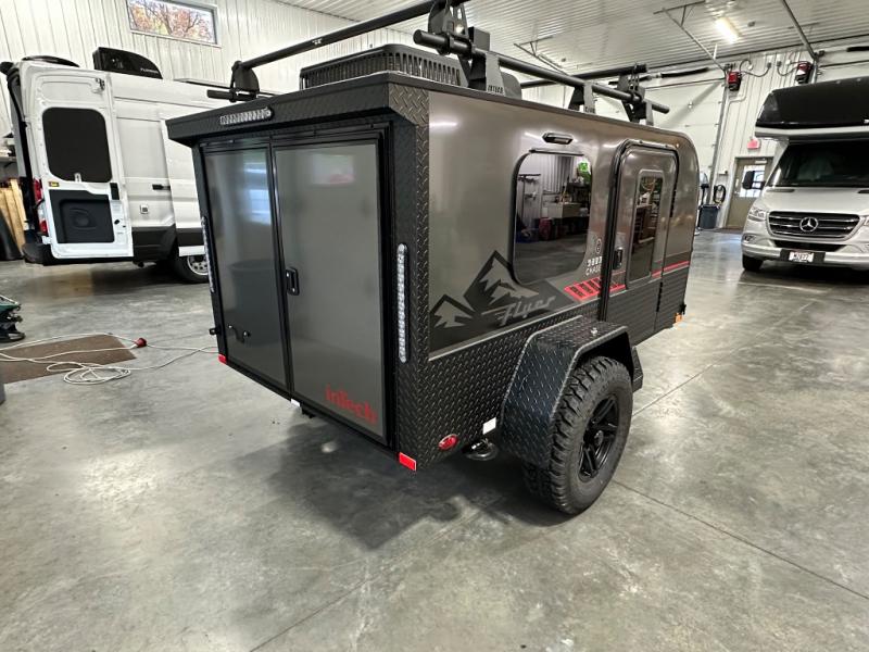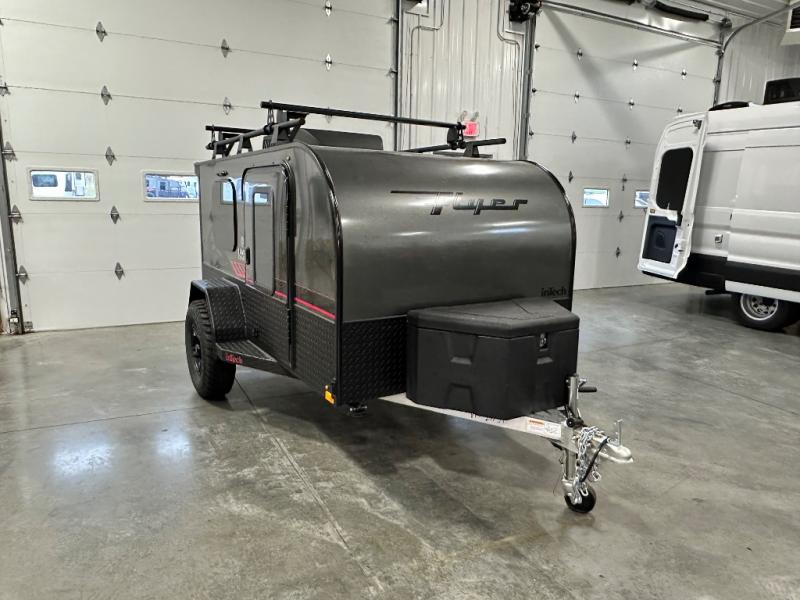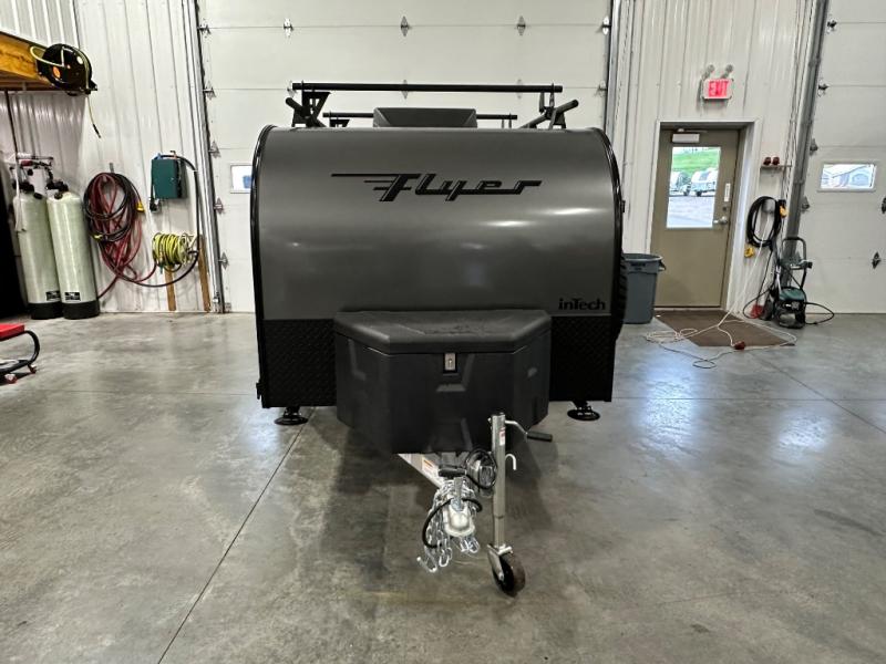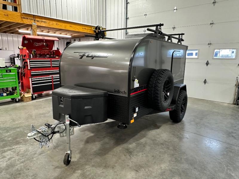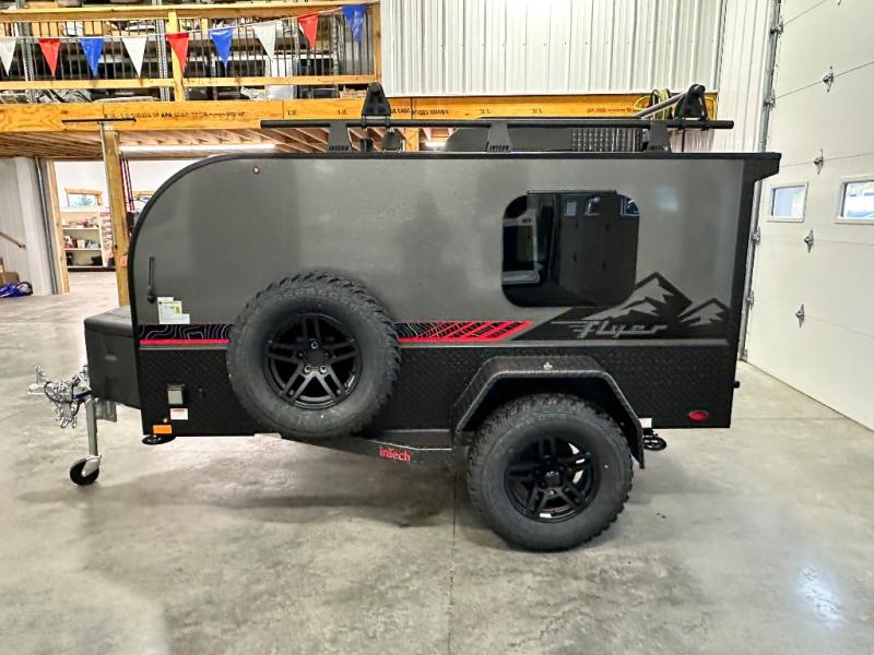 The inTech RV Flyer travel trailers and toy hauler expandables are ready for adventure whenever you are! With the all-aluminum, all-tube cage frame, the Flyer has been built with lightweight and long-lasting materials so that you can enjoy your unit for many, many years. The Flyer has a rugged design so that you can confidently explore new territory and go where traditional RVs cannot. The Flyer has a 2" rear receiver rated for 175 pounds which allows you to bring along your bikes, and the Bluetooth stereo has two speakers you can always have your best music playing. The optional roof rack will allow you to bring along kayaks, and there are more available options depending on the model you choose.