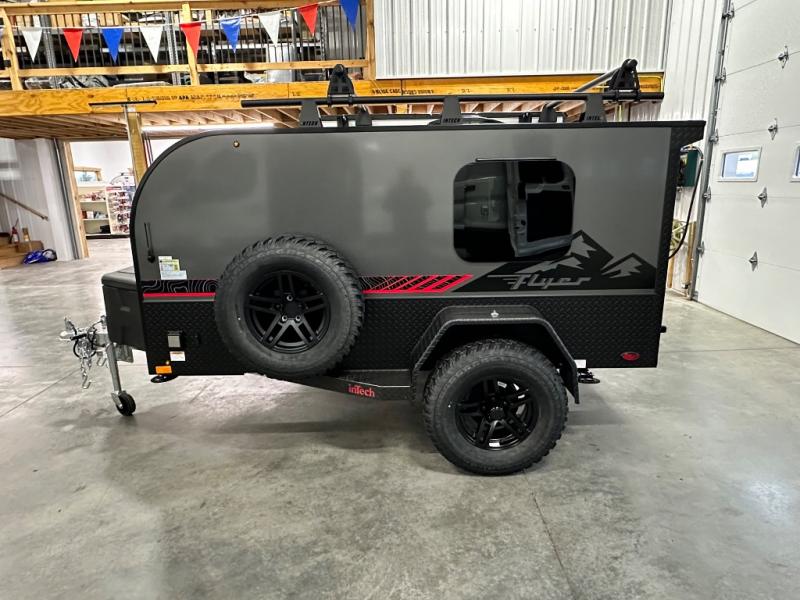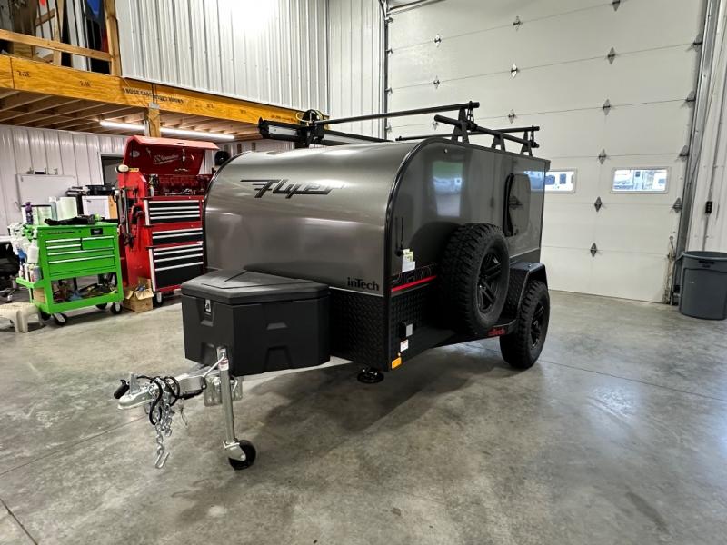 The inTech RV Flyer travel trailers and toy hauler expandables are ready for adventure whenever you are! With the all-aluminum, all-tube cage frame, the Flyer has been built with lightweight and long-lasting materials so that you can enjoy your unit for many, many years. The Flyer has a rugged design so that you can confidently explore new territory and go where traditional RVs cannot. The Flyer has a 2" rear receiver rated for 175 pounds which allows you to bring along your bikes, and the Bluetooth stereo has two speakers you can always have your best music playing. The optional roof rack will allow you to bring along kayaks, and there are more available options depending on the model you choose.
