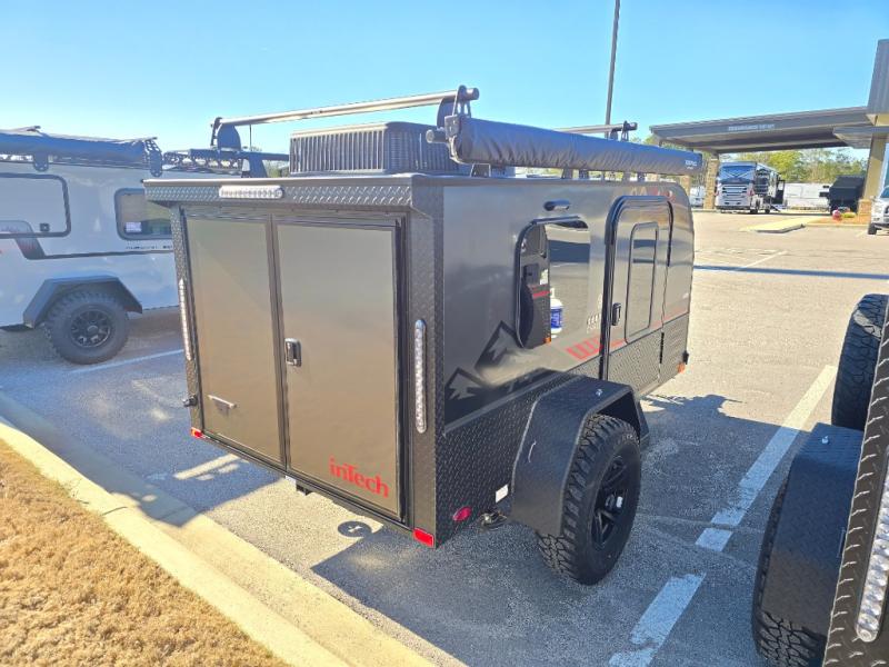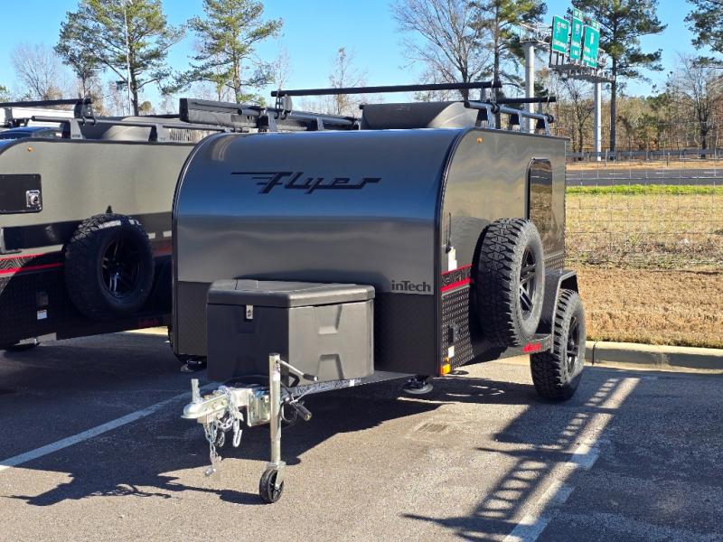 The inTech RV Flyer travel trailers and toy hauler expandables are ready for adventure whenever you are! With the all-aluminum, all-tube cage frame, the Flyer has been built with lightweight and long-lasting materials so that you can enjoy your unit for many, many years. The Flyer has a rugged design so that you can confidently explore new territory and go where traditional RVs cannot. The Flyer has a 2" rear receiver rated for 175 pounds which allows you to bring along your bikes, and the Bluetooth stereo has two speakers you can always have your best music playing. The optional roof rack will allow you to bring along kayaks, and there are more available options depending on the model you choose.