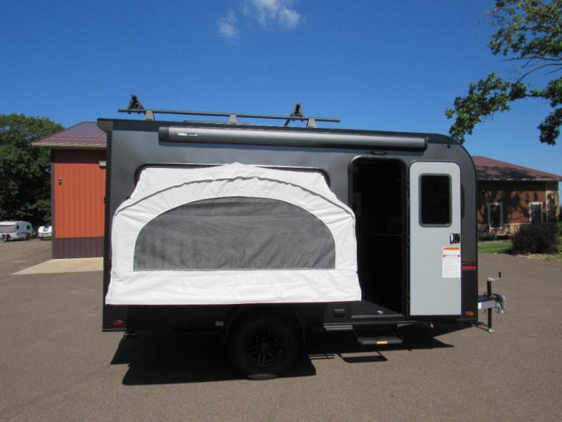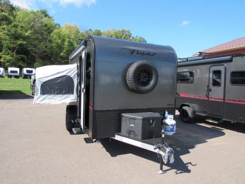 The inTech RV Flyer travel trailers and toy hauler expandables are ready for adventure whenever you are! With the all-aluminum, all-tube cage frame, the Flyer has been built with lightweight and long-lasting materials so that you can enjoy your unit for many, many years. The Flyer has a rugged design so that you can confidently explore new territory and go where traditional RVs cannot. The Flyer has a 2" rear receiver rated for 175 pounds which allows you to bring along your bikes, and the Bluetooth stereo has two speakers you can always have your best music playing. The optional roof rack will allow you to bring along kayaks, and there are more available options depending on the model you choose.