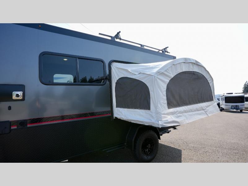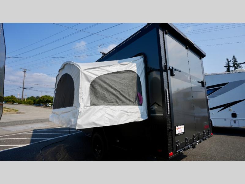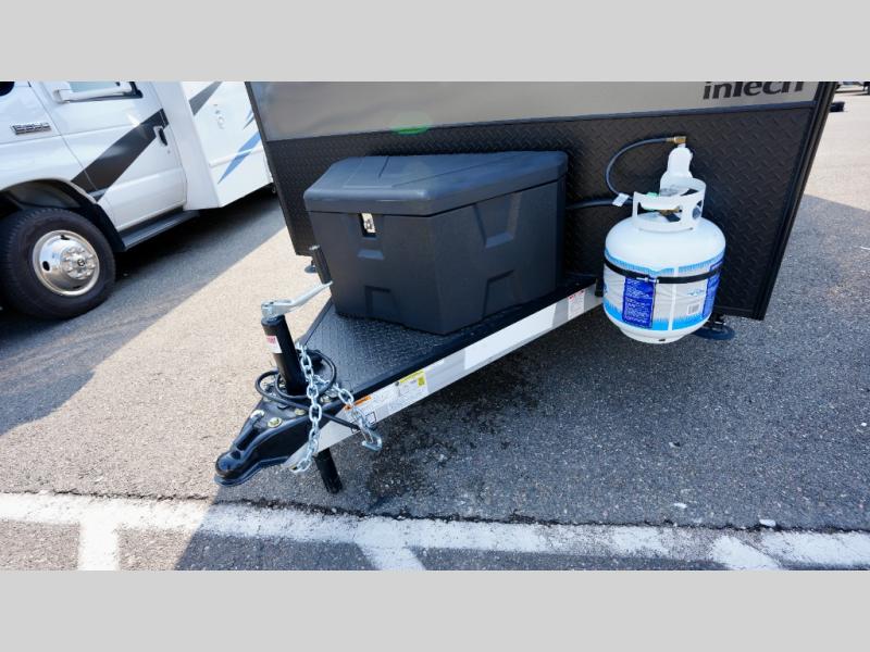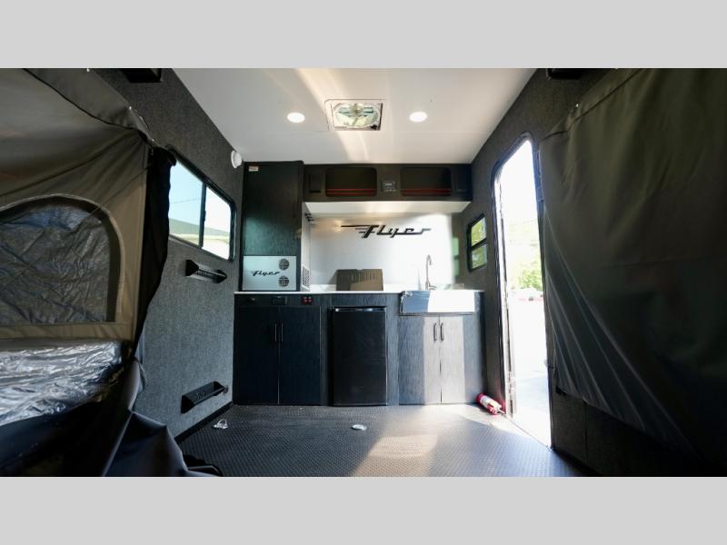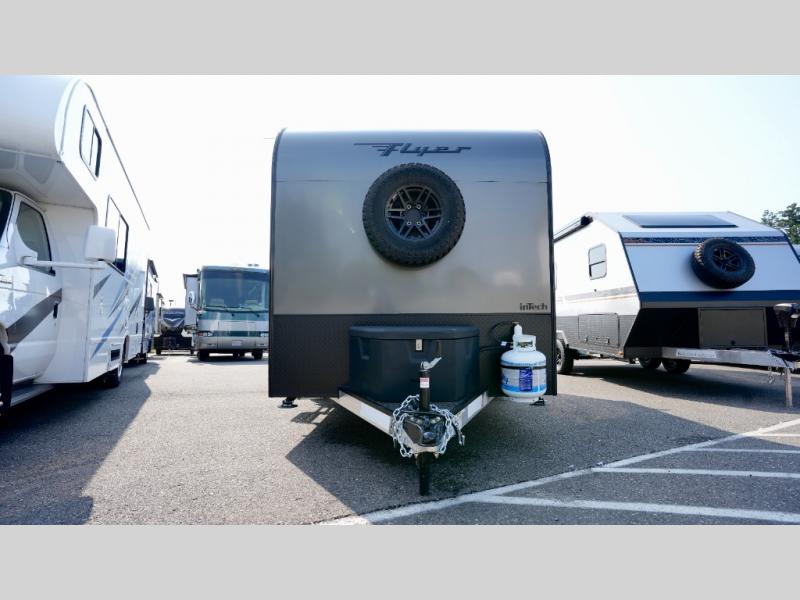 The inTech RV Flyer travel trailers and toy hauler expandables are ready for adventure whenever you are! With the all-aluminum, all-tube cage frame, the Flyer has been built with lightweight and long-lasting materials so that you can enjoy your unit for many, many years. The Flyer has a rugged design so that you can confidently explore new territory and go where traditional RVs cannot. The Flyer has a 2" rear receiver rated for 175 pounds which allows you to bring along your bikes, and the Bluetooth stereo has two speakers you can always have your best music playing. The optional roof rack will allow you to bring along kayaks, and there are more available options depending on the model you choose.