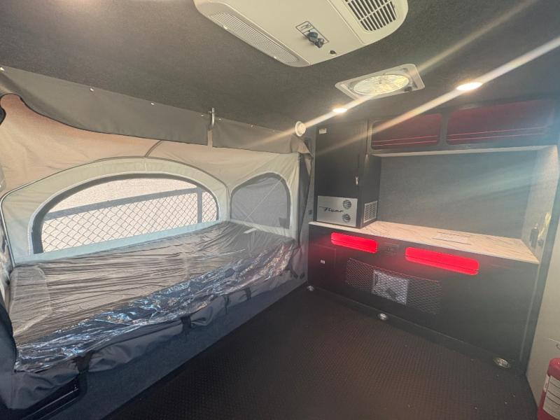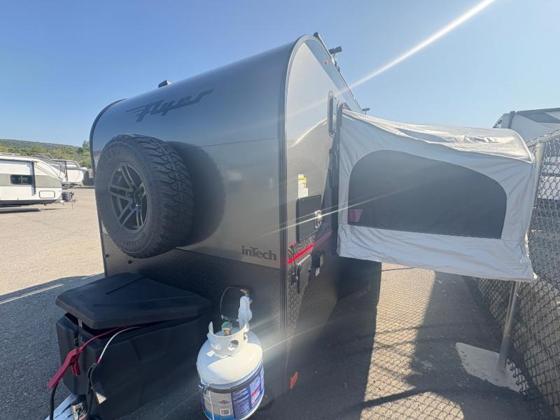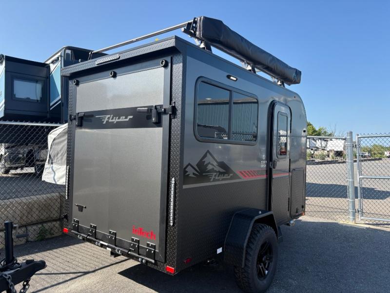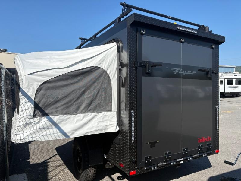 The inTech RV Flyer travel trailers and toy hauler expandables are ready for adventure whenever you are! With the all-aluminum, all-tube cage frame, the Flyer has been built with lightweight and long-lasting materials so that you can enjoy your unit for many, many years. The Flyer has a rugged design so that you can confidently explore new territory and go where traditional RVs cannot. The Flyer has a 2" rear receiver rated for 175 pounds which allows you to bring along your bikes, and the Bluetooth stereo has two speakers you can always have your best music playing. The optional roof rack will allow you to bring along kayaks, and there are more available options depending on the model you choose.