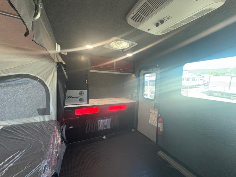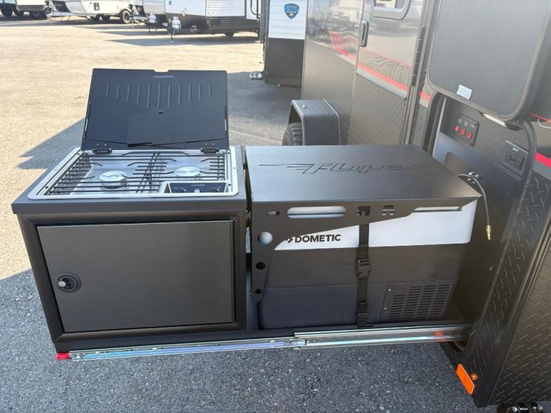 Not only is this Flyer toy hauler built to go where most traditional RVs cannot, but it is also built with a standard rear ramp or optional double rear doors, and six tie-down rings so that it can also serve as the perfect cargo transport too! The interior is spacious with its 46" x 81" tip-out bed, and if you add the second optional tip-out bed, you'll have an amazing amount of space on the inside. This expandable toy hauler is very functional, but you can make it even more enticing by adding optional Adventure Package that comes with an A/C, off-road tires, a roof rack, plus a slide out kitchen! This will allow you to cook wherever you choose to camp. The dry weight for this unit ranges from 1,580-2,110 LBS, the tongue weight ranges from 250-485 LBS, and the net carrying capacity ranges from 880-1,410 LBS.