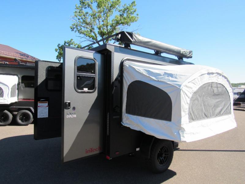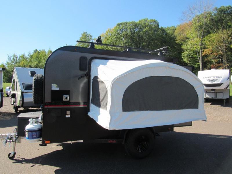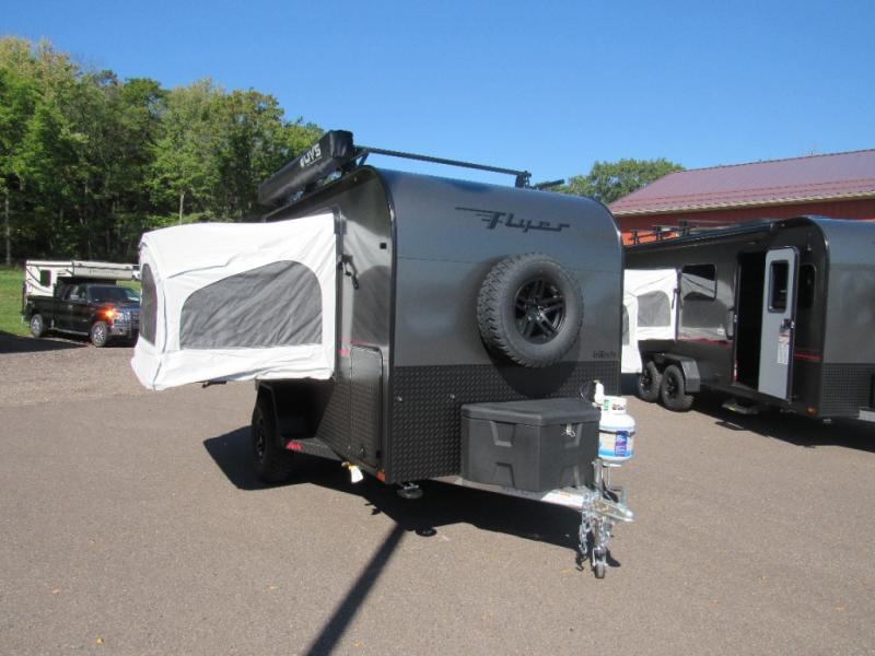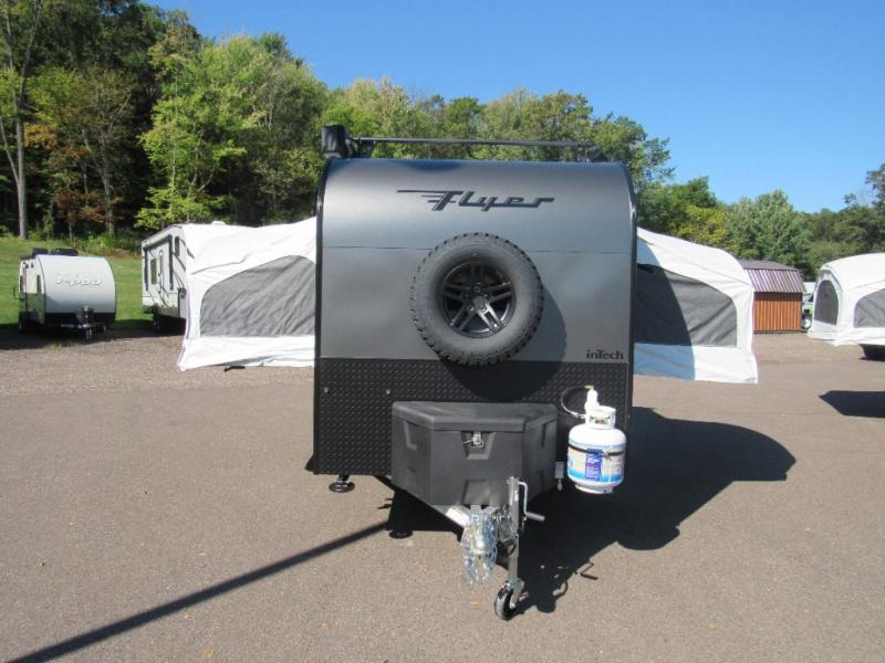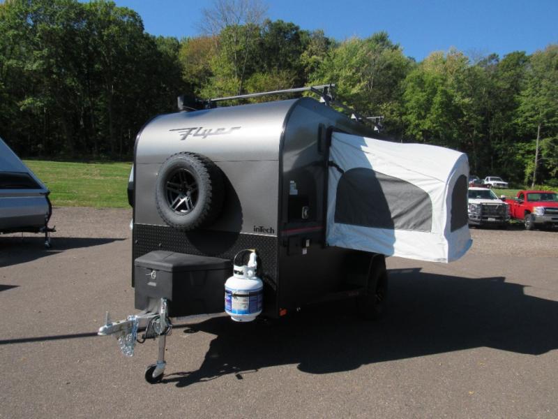 The inTech RV Flyer travel trailers and toy hauler expandables are ready for adventure whenever you are! With the all-aluminum, all-tube cage frame, the Flyer has been built with lightweight and long-lasting materials so that you can enjoy your unit for many, many years. The Flyer has a rugged design so that you can confidently explore new territory and go where traditional RVs cannot. The Flyer has a 2" rear receiver rated for 175 pounds which allows you to bring along your bikes, and the Bluetooth stereo has two speakers you can always have your best music playing. The optional roof rack will allow you to bring along kayaks, and there are more available options depending on the model you choose.