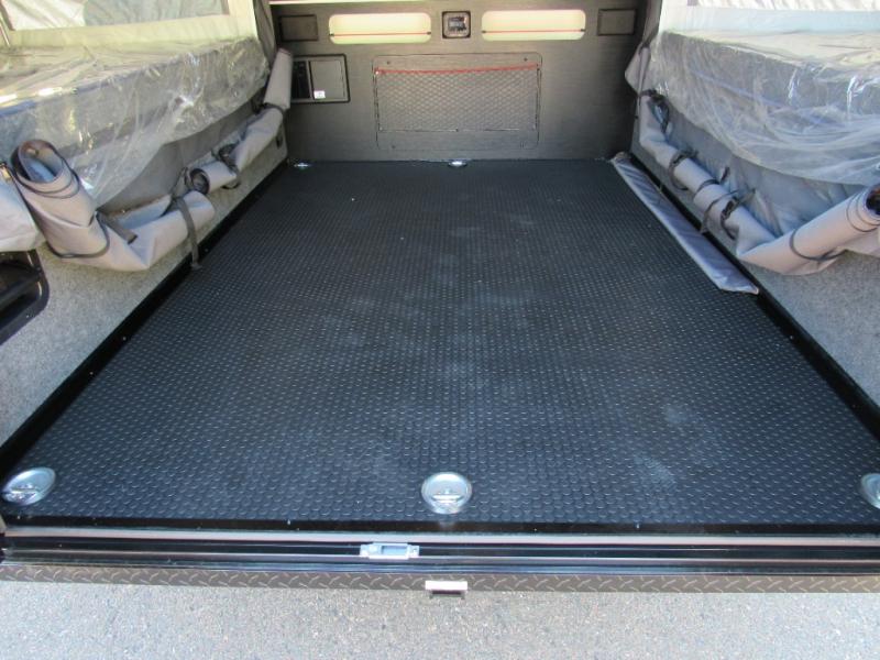 Not only is this Flyer toy hauler built to go where most traditional RVs cannot, but it is also built with a standard rear ramp or optional double rear doors, and six tie-down rings so that it can also serve as the perfect cargo transport too! The interior is spacious with its 46" x 81" tip-out bed, and if you add the second optional tip-out bed, you'll have an amazing amount of space on the inside. This expandable toy hauler is very functional, but you can make it even more enticing by adding optional Adventure Package that comes with an A/C, off-road tires, a roof rack, plus a slide out kitchen! This will allow you to cook wherever you choose to camp. The dry weight for this unit ranges from 1,580-2,110 LBS, the tongue weight ranges from 250-485 LBS, and the net carrying capacity ranges from 880-1,410 LBS.