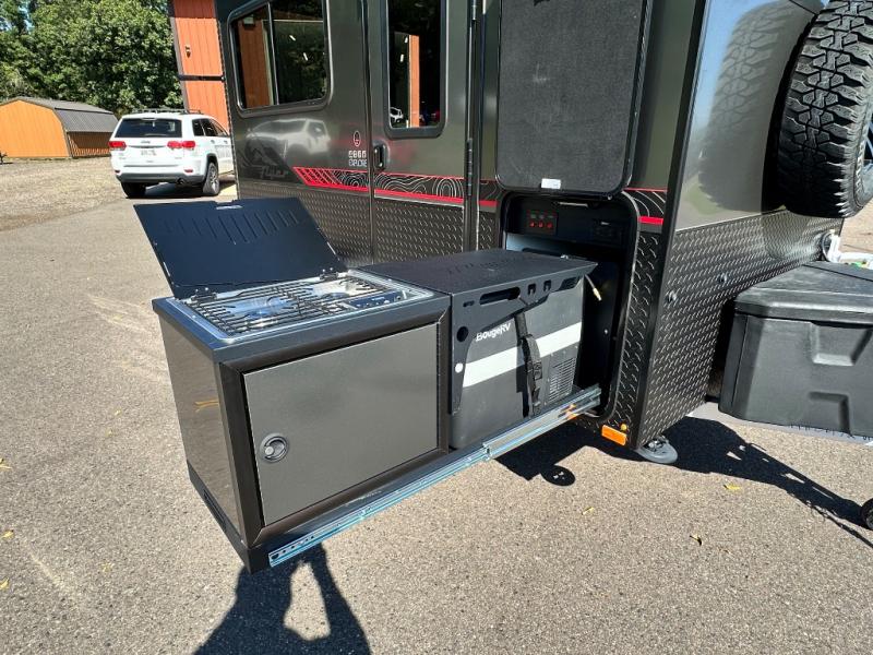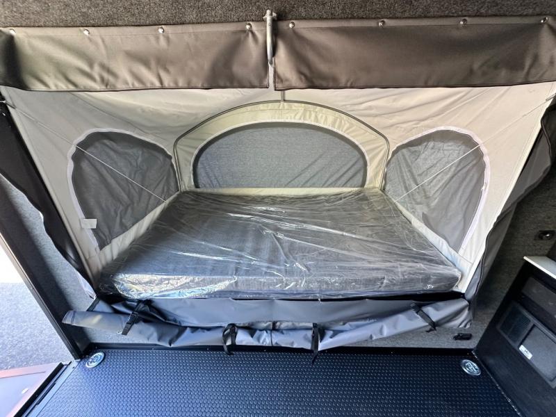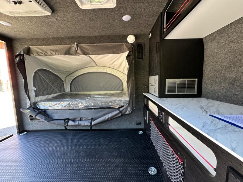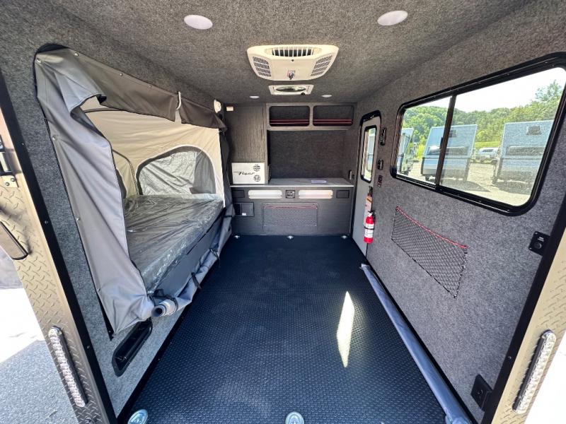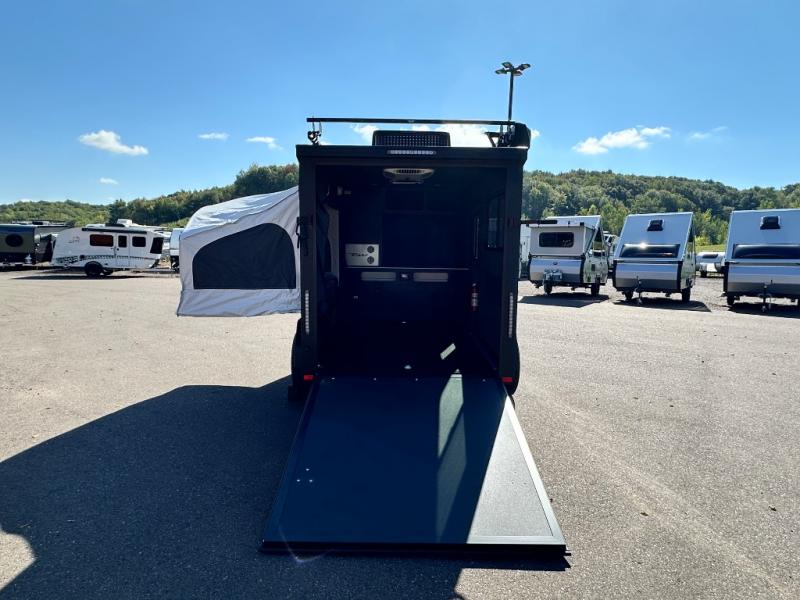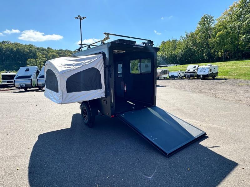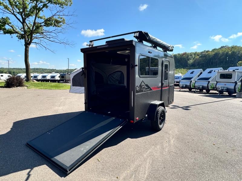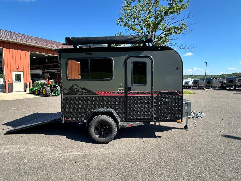 Not only is this Flyer toy hauler built to go where most traditional RVs cannot, but it is also built with a standard rear ramp or optional double rear doors, and six tie-down rings so that it can also serve as the perfect cargo transport too! The interior is spacious with its 46" x 81" tip-out bed, and if you add the second optional tip-out bed, you'll have an amazing amount of space on the inside. This expandable toy hauler is very functional, but you can make it even more enticing by adding optional Adventure Package that comes with an A/C, off-road tires, a roof rack, plus a slide out kitchen! This will allow you to cook wherever you choose to camp. The dry weight for this unit ranges from 1,580-2,110 LBS, the tongue weight ranges from 250-485 LBS, and the net carrying capacity ranges from 880-1,410 LBS.