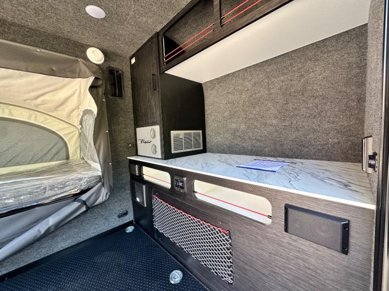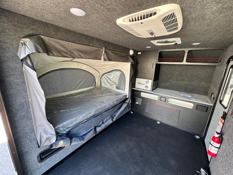 Additional Options: Slide-out Kitchen w/ Refrigerator Cooler, 15K BTU A/C, 270 Degree Awning, CharcoalinTech RV Flyer toy hauler Explore highlights:
