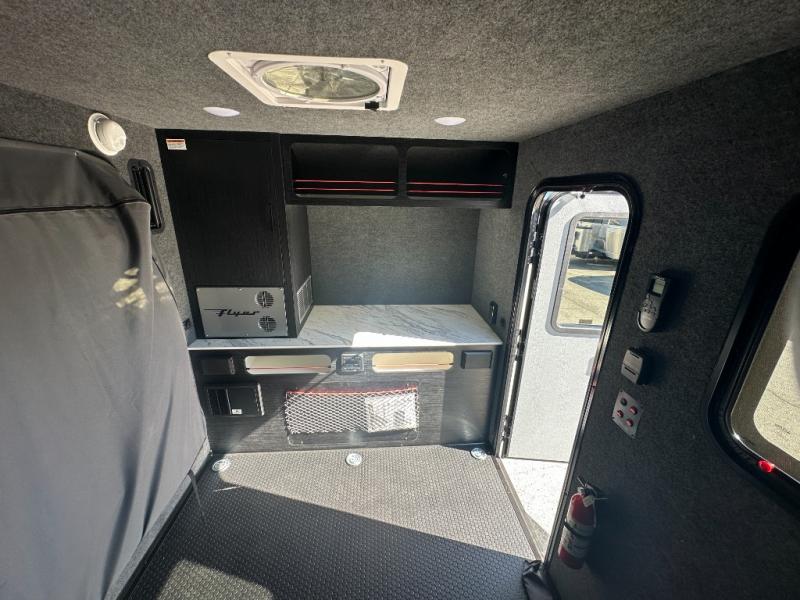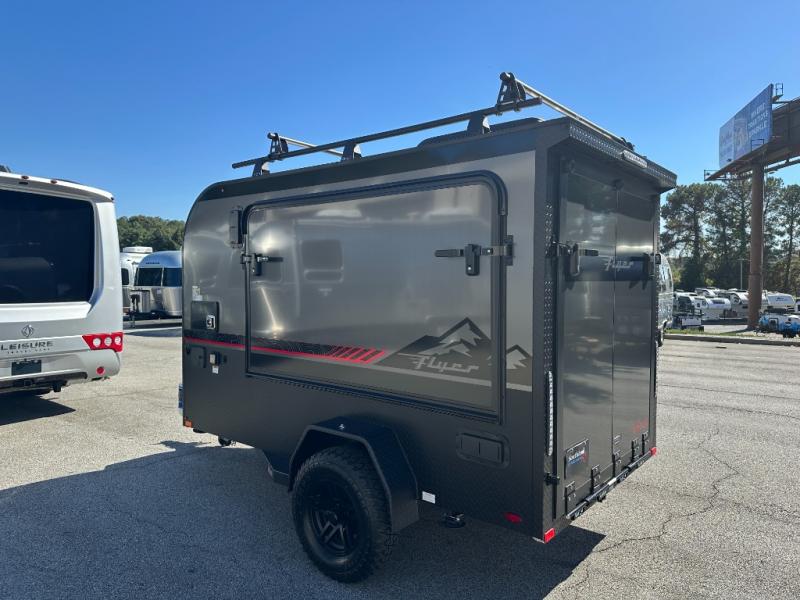 Not only is this Flyer toy hauler built to go where most traditional RVs cannot, but it is also built with a standard rear ramp or optional double rear doors, and six tie-down rings so that it can also serve as the perfect cargo transport too! The interior is spacious with its 46" x 81" tip-out bed, and if you add the second optional tip-out bed, you'll have an amazing amount of space on the inside. This expandable toy hauler is very functional, but you can make it even more enticing by adding optional Adventure Package that comes with an A/C, off-road tires, a roof rack, plus a slide out kitchen! This will allow you to cook wherever you choose to camp. The dry weight for this unit ranges from 1,580-2,110 LBS, the tongue weight ranges from 250-485 LBS, and the net carrying capacity ranges from 880-1,410 LBS.