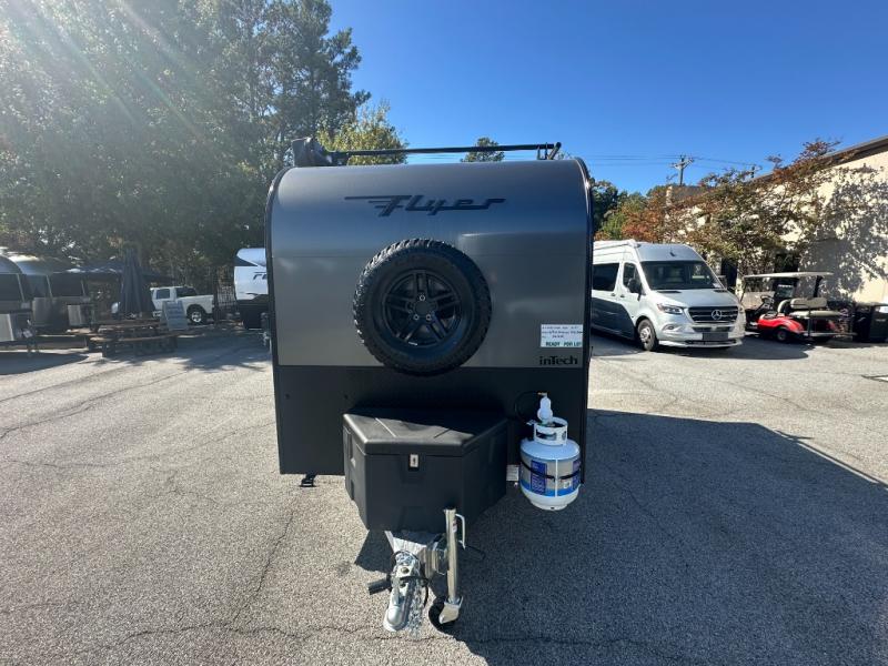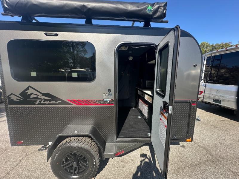 The inTech RV Flyer travel trailers and toy hauler expandables are ready for adventure whenever you are! With the all-aluminum, all-tube cage frame, the Flyer has been built with lightweight and long-lasting materials so that you can enjoy your unit for many, many years. The Flyer has a rugged design so that you can confidently explore new territory and go where traditional RVs cannot. The Flyer has a 2" rear receiver rated for 175 pounds which allows you to bring along your bikes, and the Bluetooth stereo has two speakers you can always have your best music playing. The optional roof rack will allow you to bring along kayaks, and there are more available options depending on the model you choose.