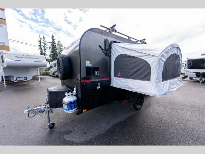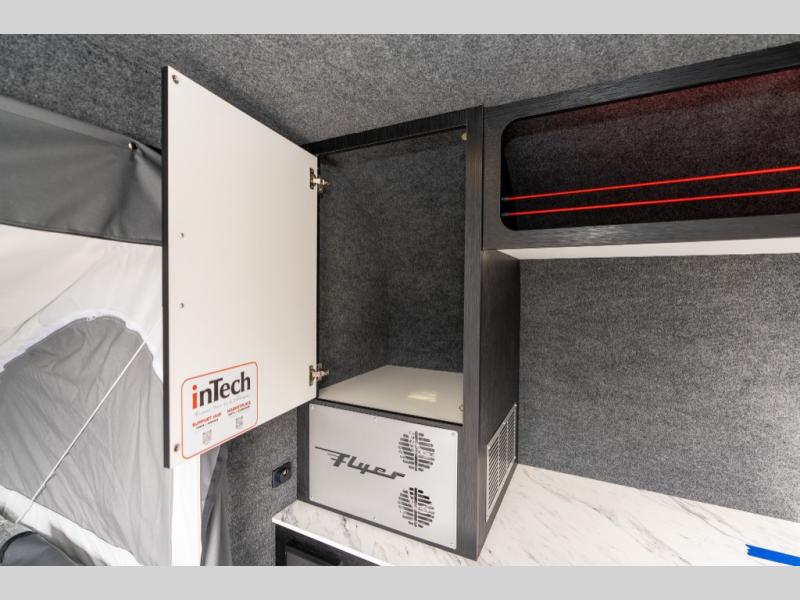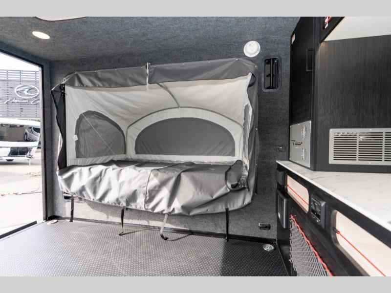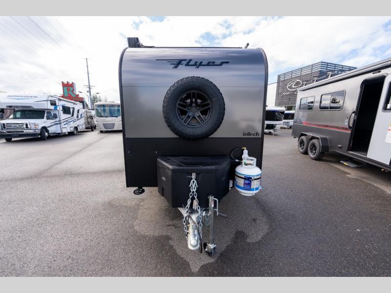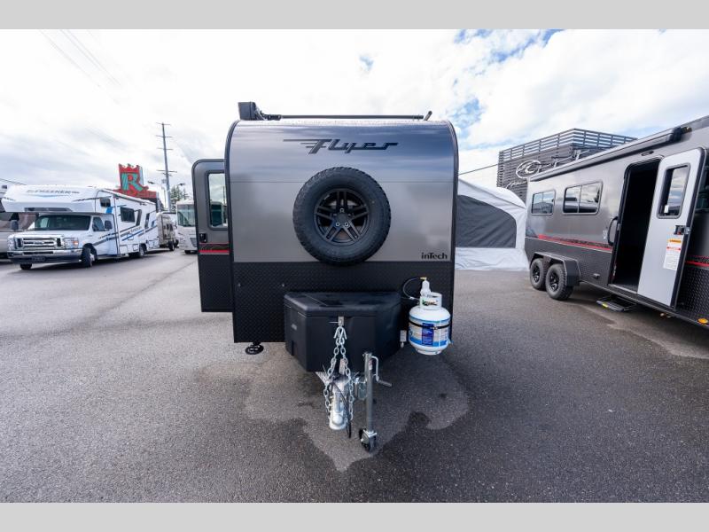 The inTech RV Flyer travel trailers and toy hauler expandables are ready for adventure whenever you are! With the all-aluminum, all-tube cage frame, the Flyer has been built with lightweight and long-lasting materials so that you can enjoy your unit for many, many years. The Flyer has a rugged design so that you can confidently explore new territory and go where traditional RVs cannot. The Flyer has a 2" rear receiver rated for 175 pounds which allows you to bring along your bikes, and the Bluetooth stereo has two speakers you can always have your best music playing. The optional roof rack will allow you to bring along kayaks, and there are more available options depending on the model you choose.