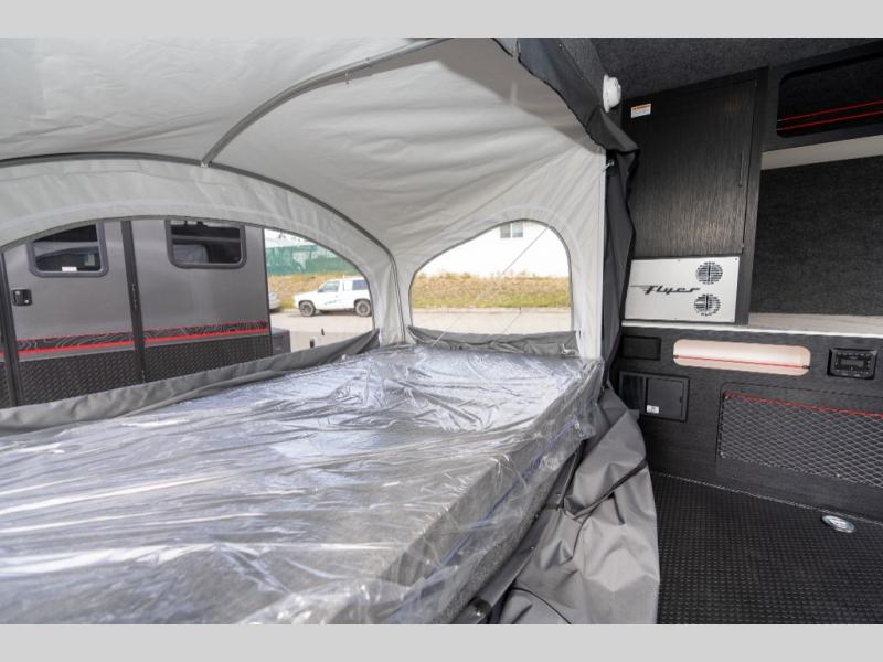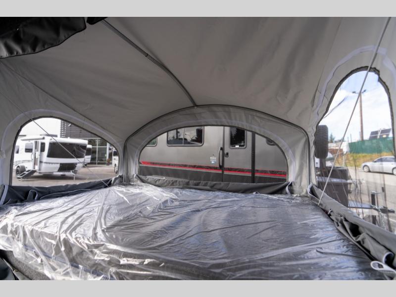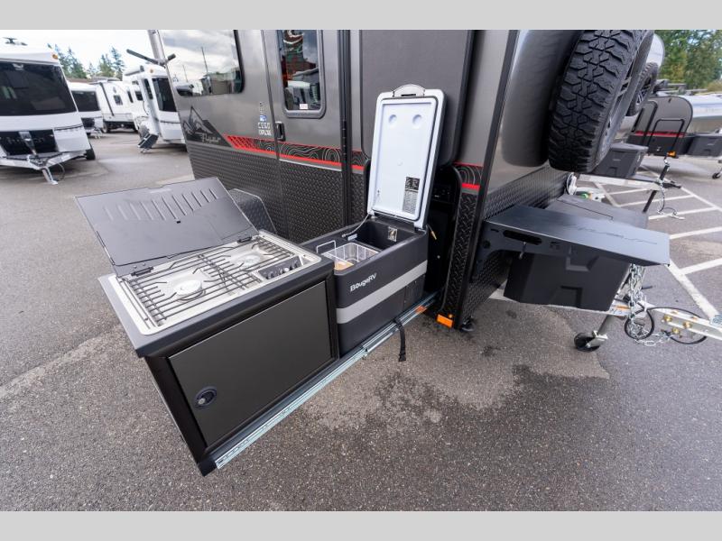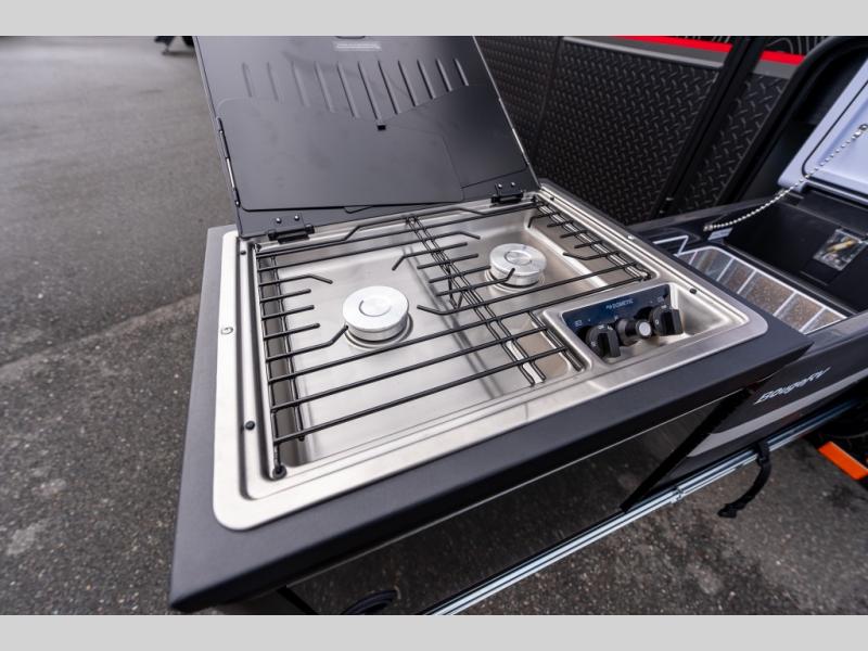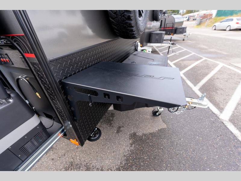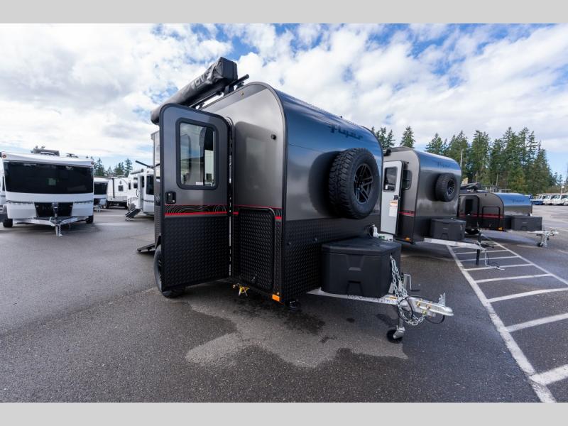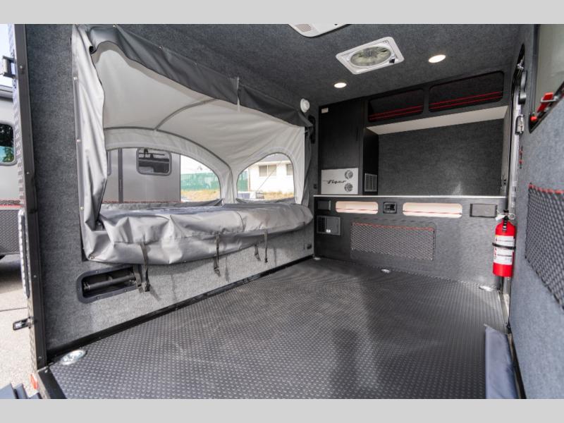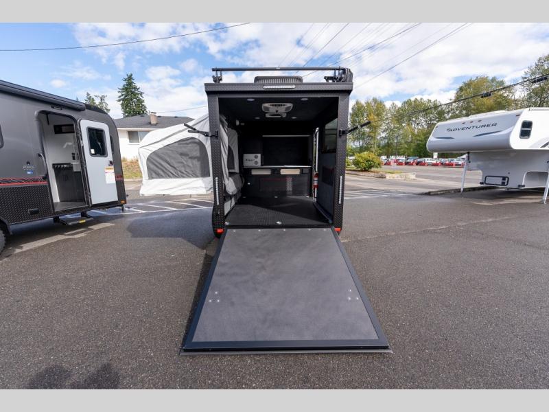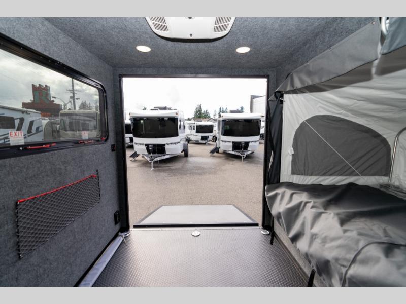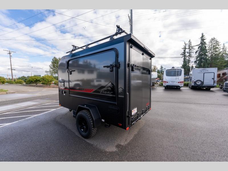 Not only is this Flyer toy hauler built to go where most traditional RVs cannot, but it is also built with a standard rear ramp or optional double rear doors, and six tie-down rings so that it can also serve as the perfect cargo transport too! The interior is spacious with its 46" x 81" tip-out bed, and if you add the second optional tip-out bed, you'll have an amazing amount of space on the inside. This expandable toy hauler is very functional, but you can make it even more enticing by adding optional Adventure Package that comes with an A/C, off-road tires, a roof rack, plus a slide out kitchen! This will allow you to cook wherever you choose to camp. The dry weight for this unit ranges from 1,580-2,110 LBS, the tongue weight ranges from 250-485 LBS, and the net carrying capacity ranges from 880-1,410 LBS.