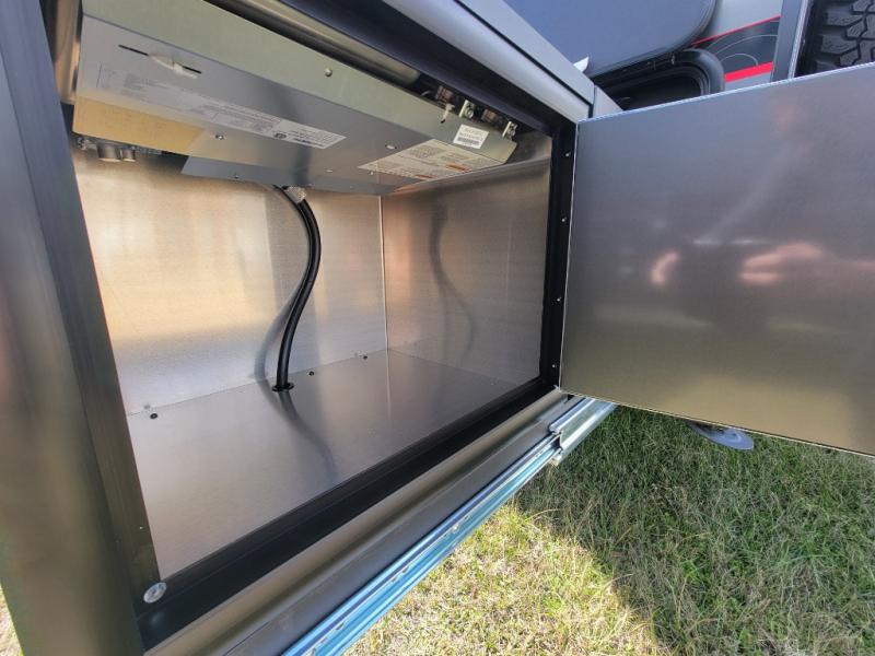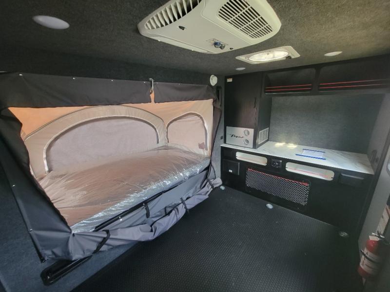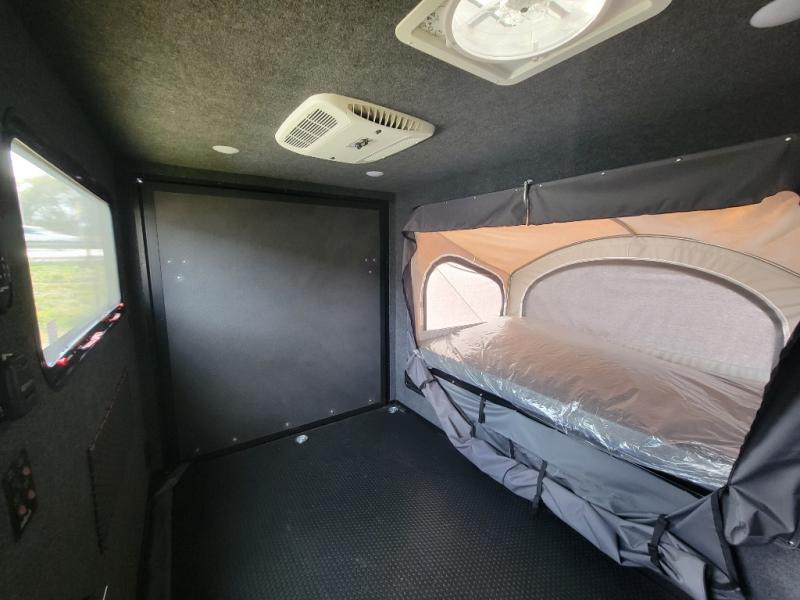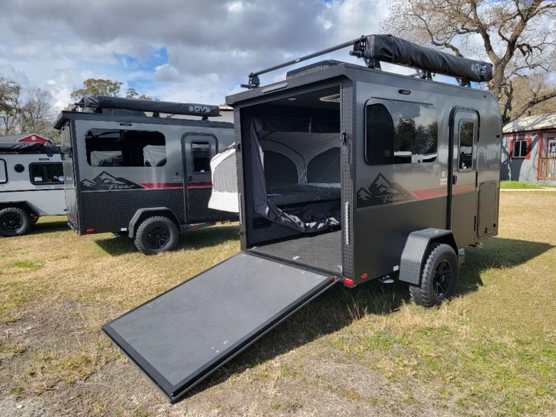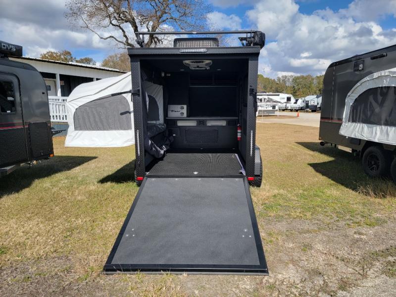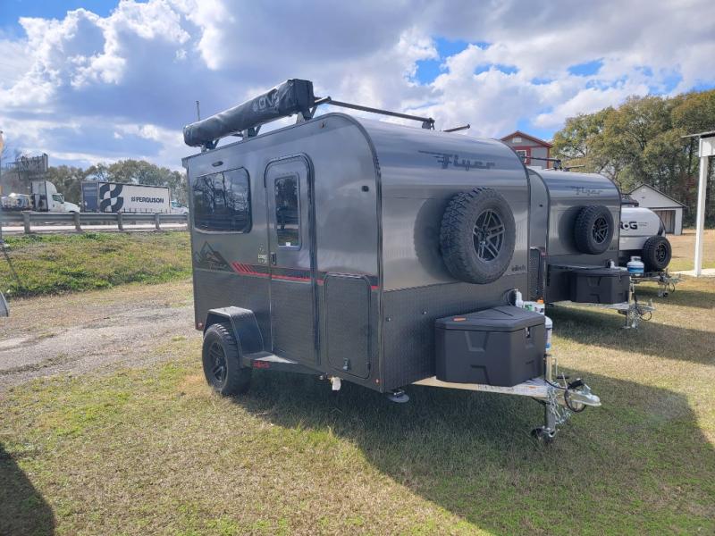 Not only is this Flyer toy hauler built to go where most traditional RVs cannot, but it is also built with a standard rear ramp or optional double rear doors, and six tie-down rings so that it can also serve as the perfect cargo transport too! The interior is spacious with its 46" x 81" tip-out bed, and if you add the second optional tip-out bed, you'll have an amazing amount of space on the inside. This expandable toy hauler is very functional, but you can make it even more enticing by adding optional Adventure Package that comes with an A/C, off-road tires, a roof rack, plus a slide out kitchen! This will allow you to cook wherever you choose to camp. The dry weight for this unit ranges from 1,580-2,110 LBS, the tongue weight ranges from 250-485 LBS, and the net carrying capacity ranges from 880-1,410 LBS.