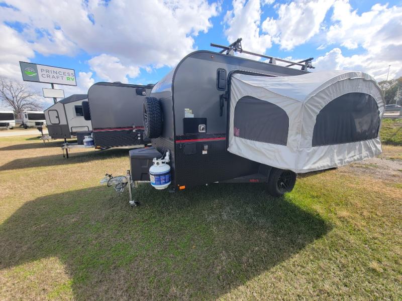 The inTech RV Flyer travel trailers and toy hauler expandables are ready for adventure whenever you are! With the all-aluminum, all-tube cage frame, the Flyer has been built with lightweight and long-lasting materials so that you can enjoy your unit for many, many years. The Flyer has a rugged design so that you can confidently explore new territory and go where traditional RVs cannot. The Flyer has a 2" rear receiver rated for 175 pounds which allows you to bring along your bikes, and the Bluetooth stereo has two speakers you can always have your best music playing. The optional roof rack will allow you to bring along kayaks, and there are more available options depending on the model you choose.