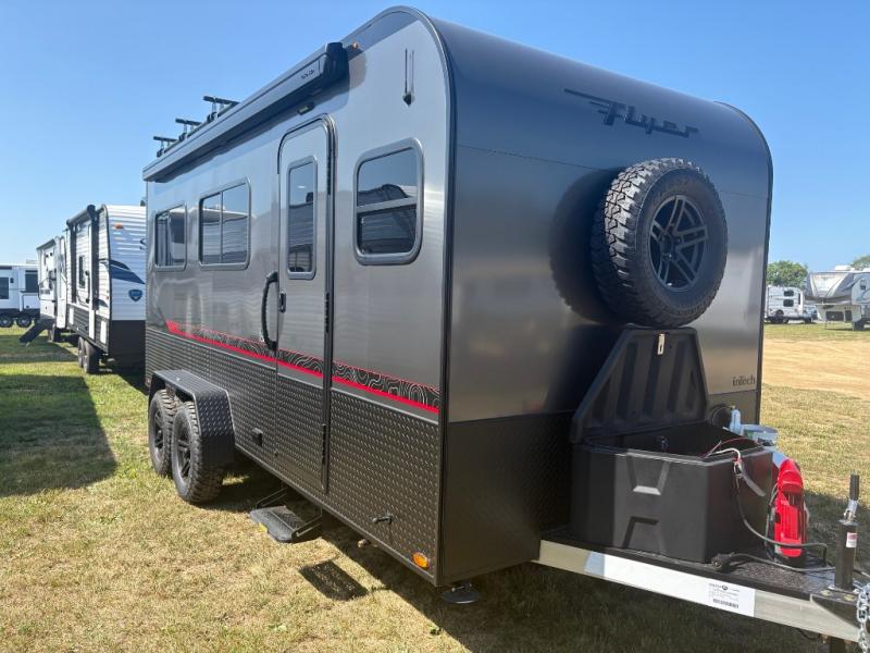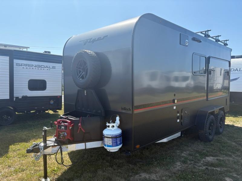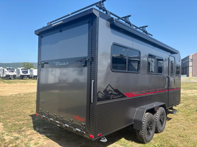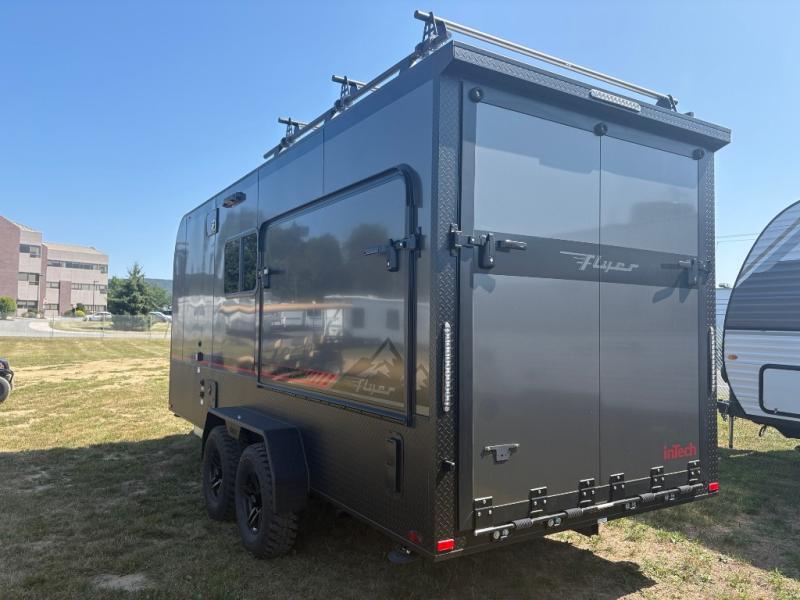The inTech RV Flyer travel trailers and toy hauler expandables are ready for adventure whenever you are! With the all-aluminum, all-tube cage frame, the Flyer has been built with lightweight and long-lasting materials so that you can enjoy your unit for many, many years. The Flyer has a rugged design so that you can confidently explore new territory and go where traditional RVs cannot. The Flyer has a 2" rear receiver rated for 175 pounds which allows you to bring along your bikes, and the Bluetooth stereo has two speakers you can always have your best music playing. The optional roof rack will allow you to bring along kayaks, and there are more available options depending on the model you choose.