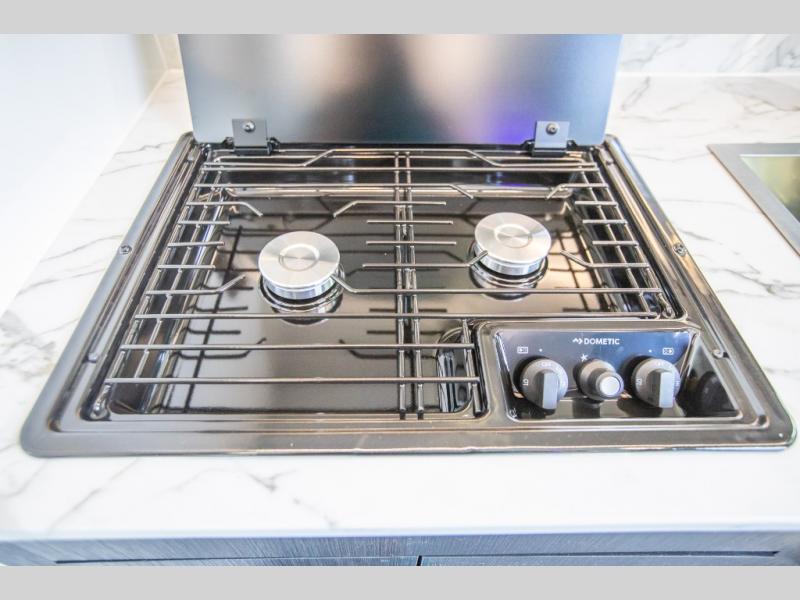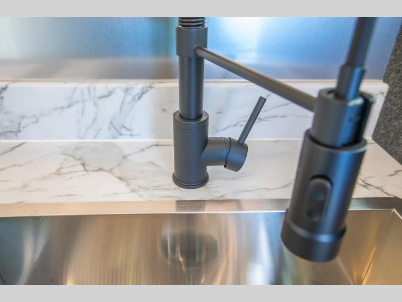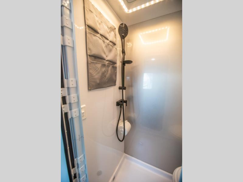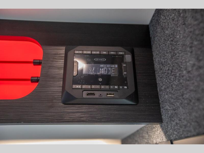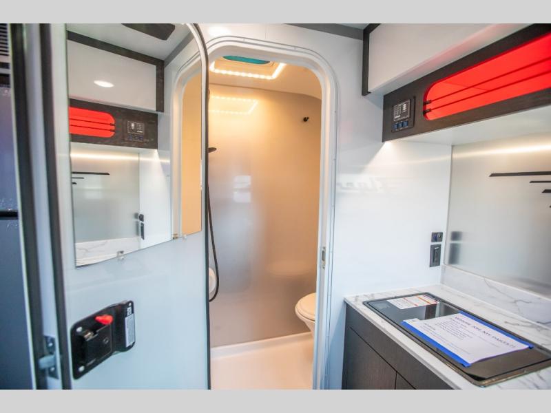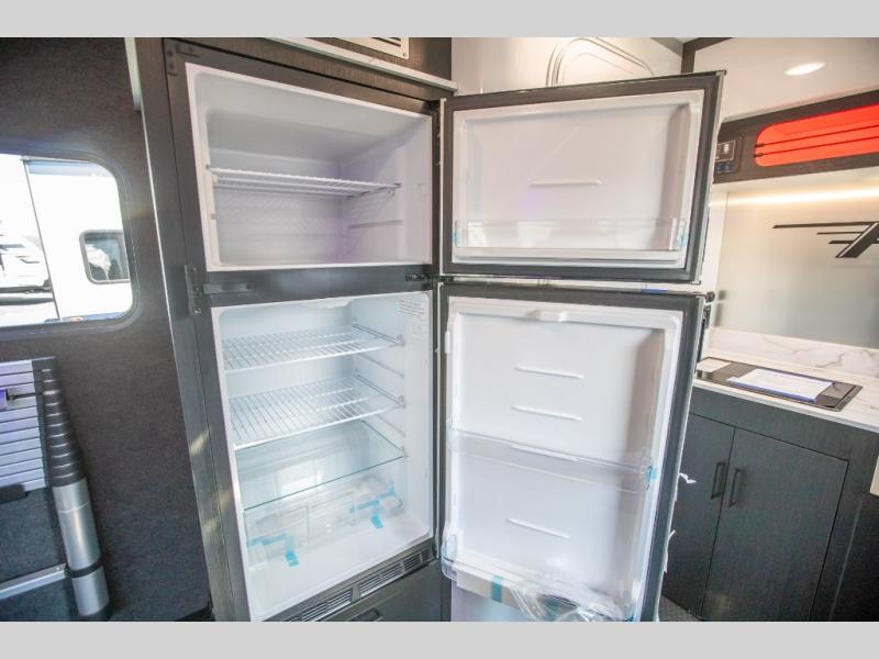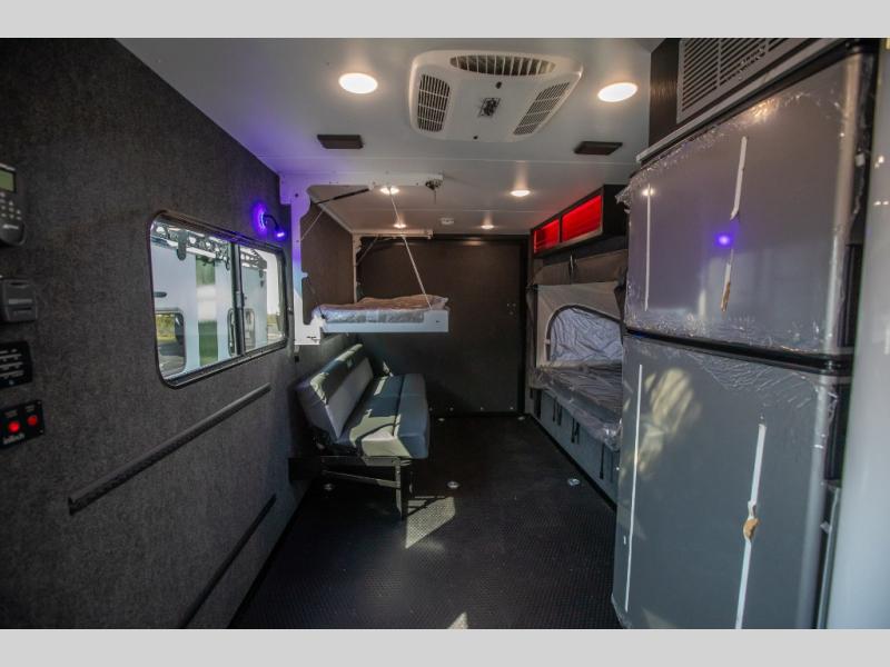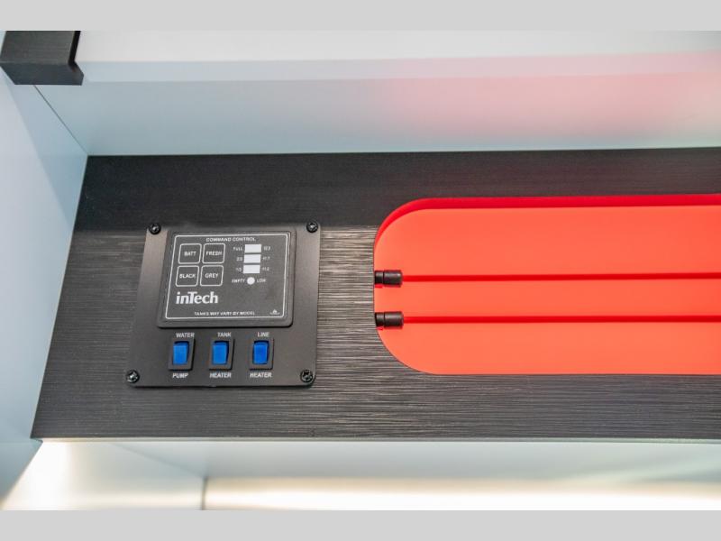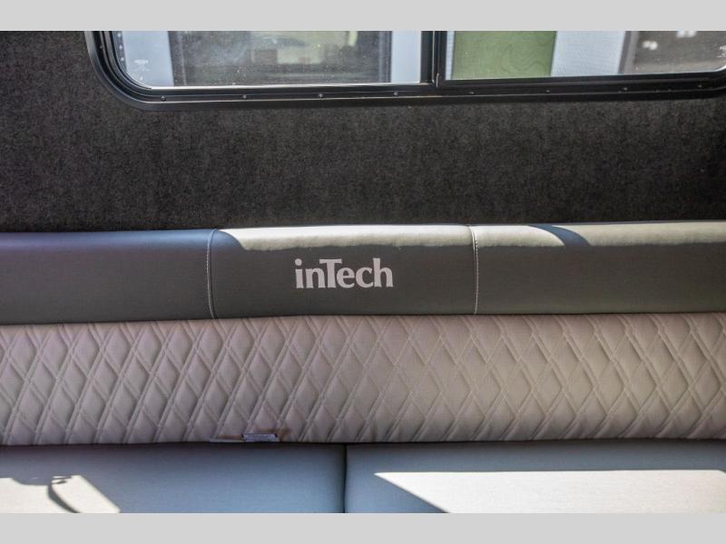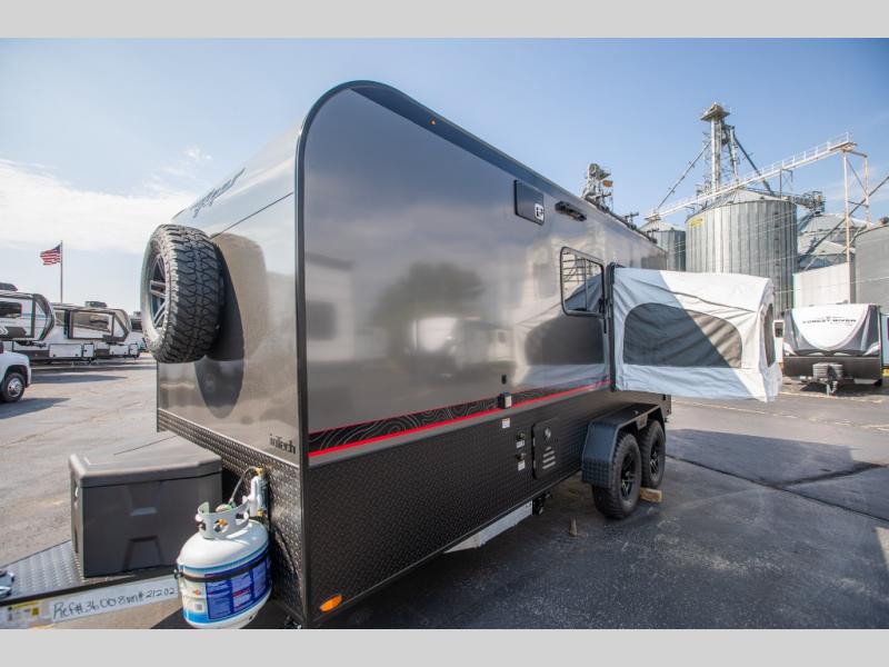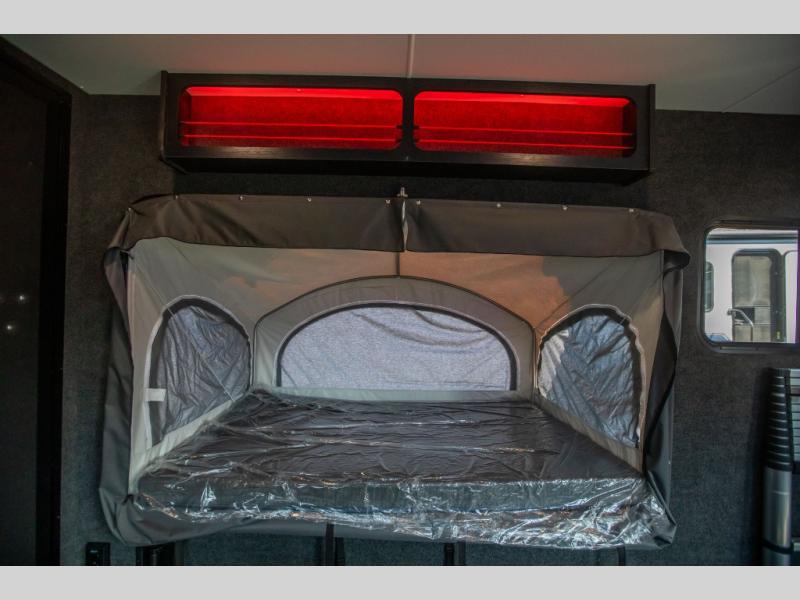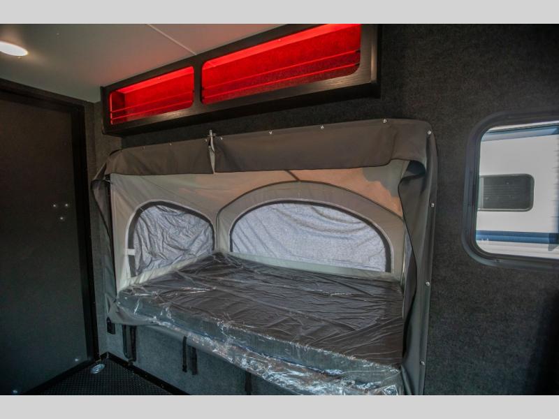 You asked for it and inTech RV delivered with this toy hauler expandable! You will enjoy some of the same features as the Discover model, but will also appreciate a wet bath in the Forge. There is a porcelain toilet, aluminum walls with a sealing exterior door so you don't need a shower curtain, storage space, and even a bath roof vent with an onboard switch! The kitchen includes everything you need to cook meals each day, including a two burner cooktop, a large farmhouse sink, and a spacious 8 cu.ft. 12V refrigerator! The 80" x 160" garage floor space features durable black coin flooring and is large enough to bring in most side-by-sides, plus there are tie-downs to keep your toys secure. For sleeping space, you'll find a tip-out bed and a standard sleeper sofa, and if you have more campers tagging along, you can add the optional drop-down bunk, or even bring your own air mattress! A few more stand-out features you'll love on the Forge are the on-demand LP water heater, the aluminum walk-on roof, tinted windows, and Airline Track sidewall tie-down area! The dry weight for this model ranges from 3,845 lbs. - 4,300 lbs., and the carrying capacity ranges from 2,700 lbs. - 3,155 lbs.